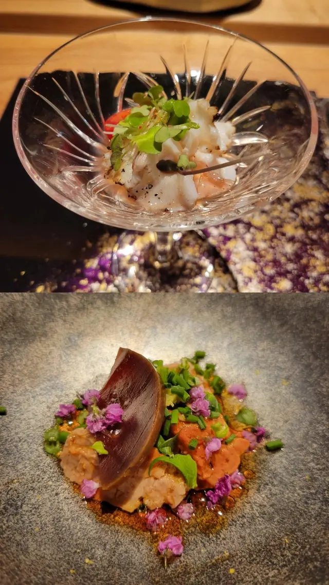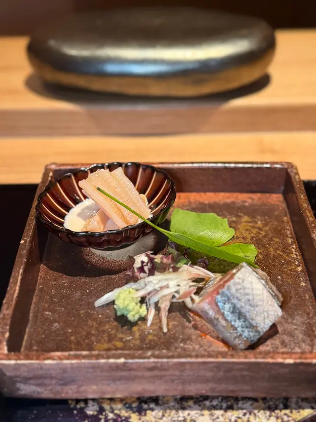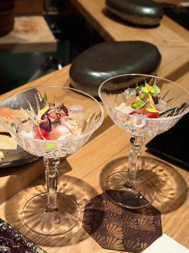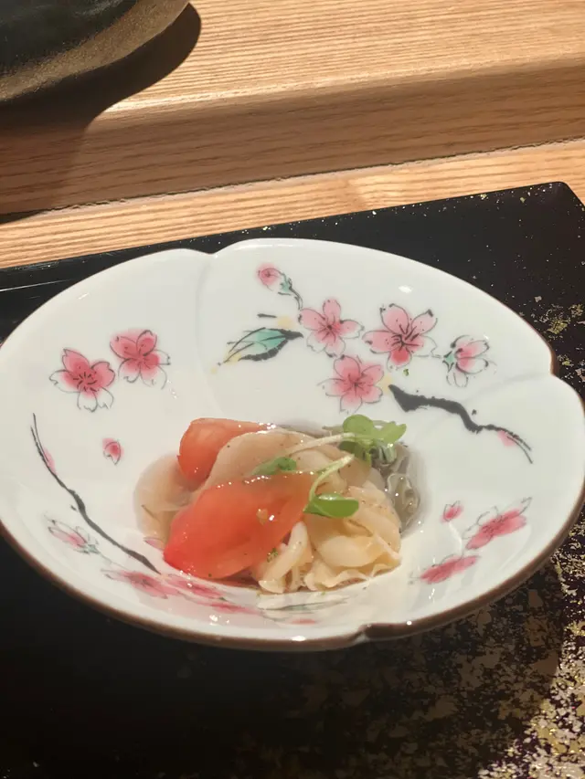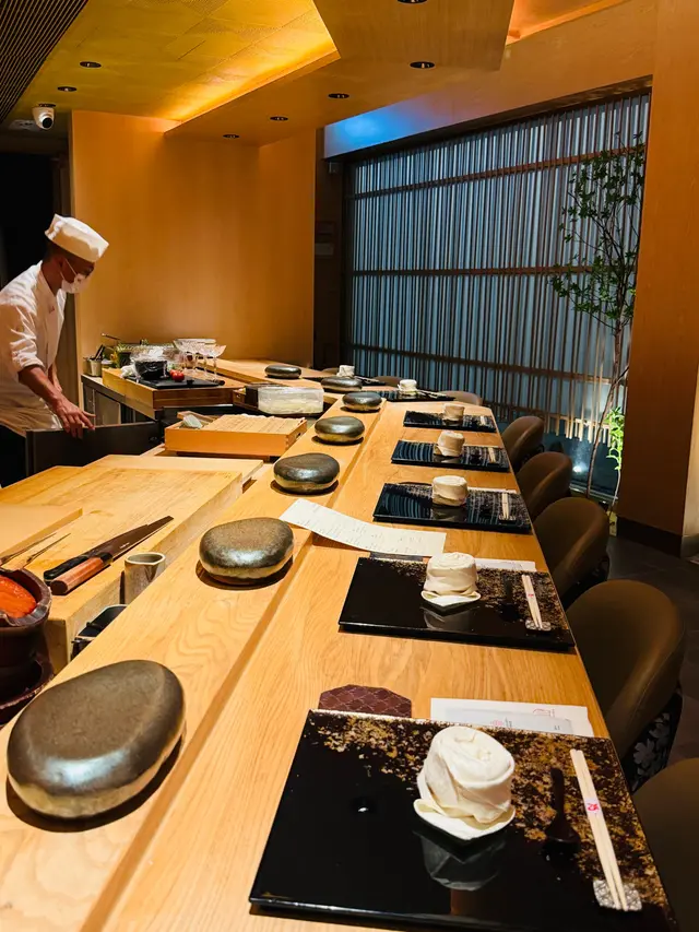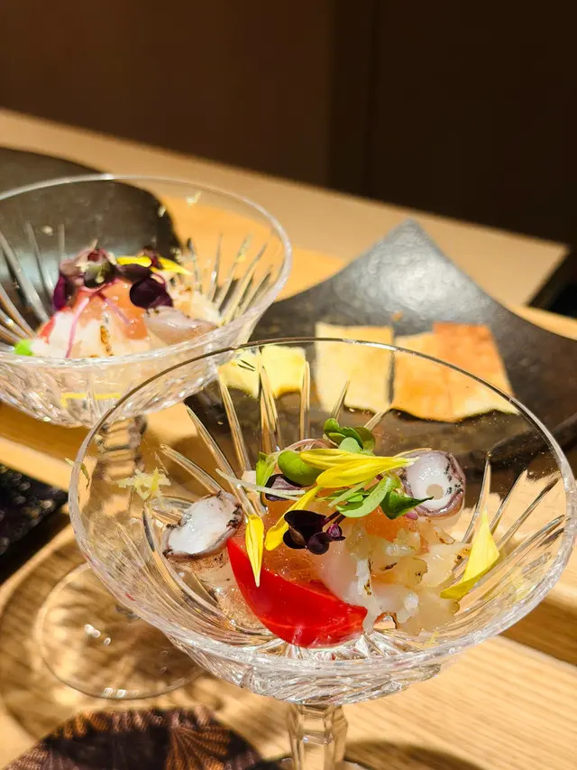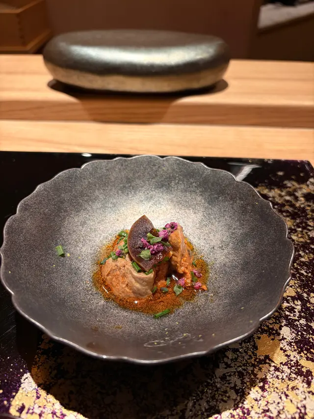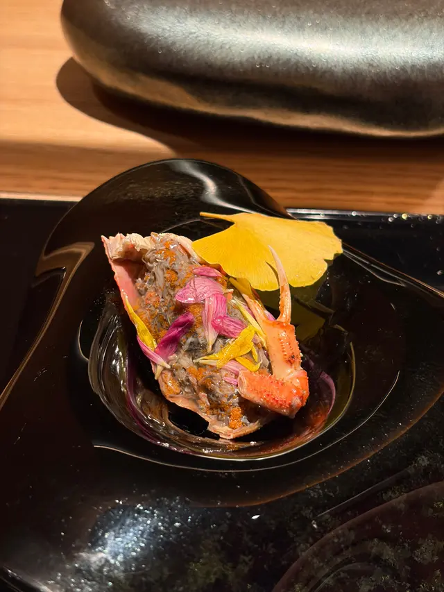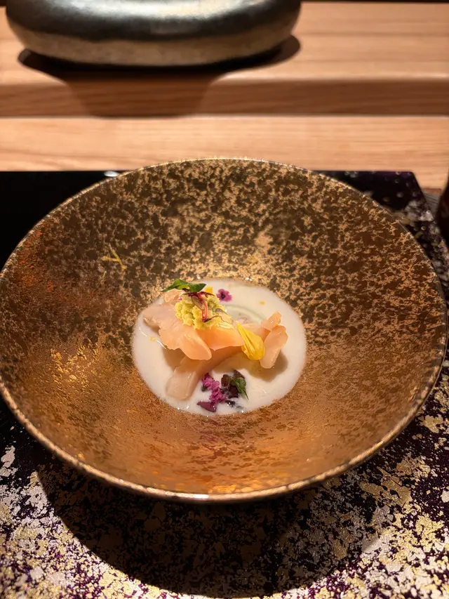 位於上環的這間日式Omakase,以京都庭園竹林為主題,裝修雅緻,氛圍寧靜。師傅用心製作每道料理,更細心講解稀有食材,讓人不只享受美食,更增見識。前菜以長野番茄和水八爪魚打開味蕾,清新爽口。京都風柿盒配上蝦肉,鮮味獨特,令人回味。隨後的白魷魚赤馬糞海膽、青森鰆魚與北海道秋刀魚,每一道都展現食材本味。白紋斑點蝦以蝦膏、牛油和甜酒調製,香濃誘人。特別喜愛中華錦繡蟹,蟹蓋中盛滿鮮美蟹肉,令人垂涎。倒根縣鮑魚配瑤柱乾與魚翅,高湯燴製,鮮味層層遞進。真名鰹以柚庵燒搭魚子醬,完美配搭,一試難忘。壽司五款,包括金目鯛、天草縣車海老、皮剝魚、石鯛魚及酸昆布竹甲魚,每款口感豐富。海膽吞拿魚蓉配烤松茸,香氣十足,驚喜滿分。最後以大和蜆赤出汁暖胃,甜品則是單波栗子與靜岡蜜瓜,為這頓廚師發辦畫上完美句點。整餐視覺與味覺皆令人難忘Read More
