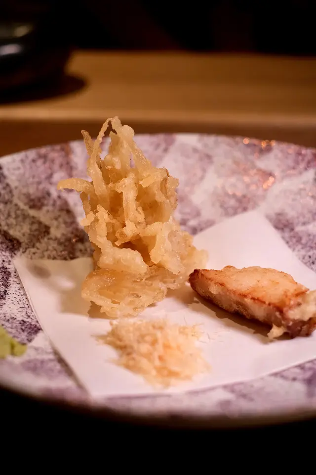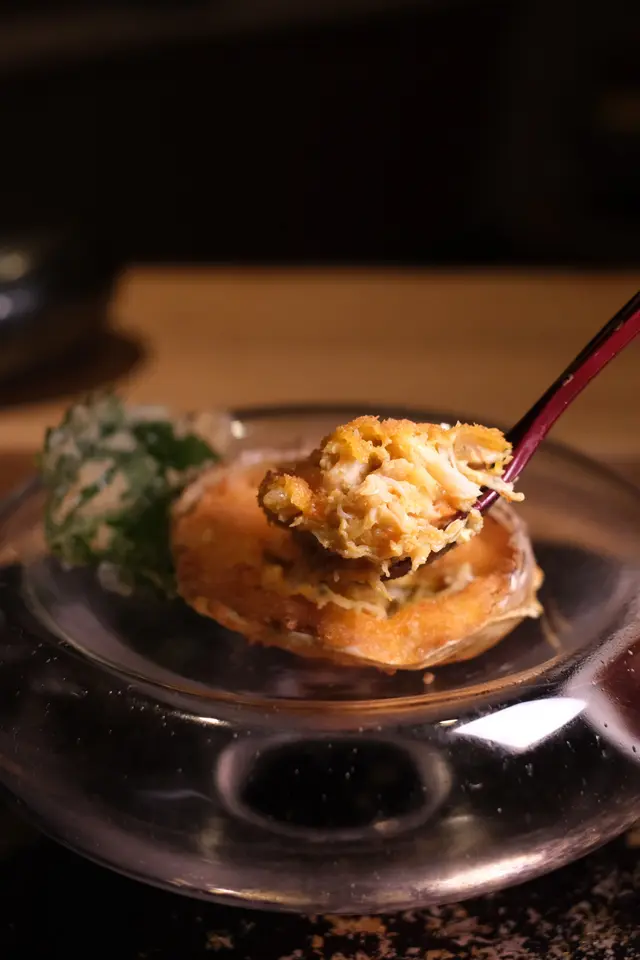 主打懷石風格的廚師發辦Omakase套餐,由曾任東京米芝蓮一星壽司店「銀座久兵衛」的高橋公也主廚掌舵。餐廳以京都禪宗庭園為設計靈感,空間雅致寧靜,讓人在繁忙都市中感受片刻安然。坐吧台可近距離欣賞師傅精湛的料理手藝,是對日式料理文化的深刻詮釋。餐點以當季最新鮮的海鮮為主,口味層次豐富。蟹肉蟹蓋醬汁濃郁,鮮甜滑順,令人印象深刻;真名鰹經柚庵燒處理,焦香鹹鮮加上魚子醬完美融合;魚翅天婦羅外酥內嫩,搭配蘿蔔蓉,平衡口感。其他刺身如北海道八爪魚、白魷魚和青森鰆魚同樣新鮮饒富彈性,壽司則精選金目鯛、車海老及魚肝皮剝魚,食材精緻且層次豐富。整體用餐體驗不僅是味覺盛宴,更是一場視覺與感官享受,適合追求頂級日本料理的食客。建議預約,體驗這份難得的Omakase盛宴Read More