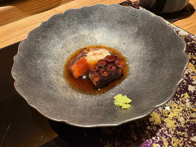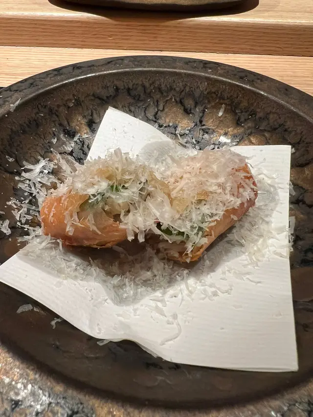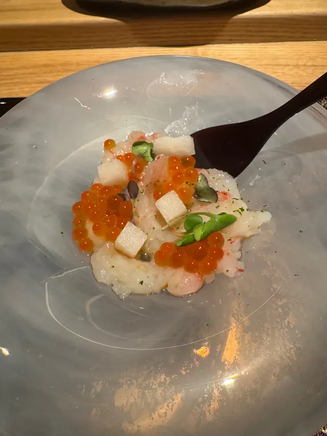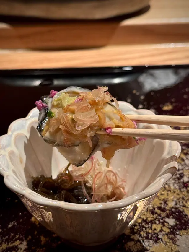 呢間omakase超級有誠意‼️每次去個menu都會有所改變🌸餐廳嘅外牆用咗黑色做主色,比人有一種神秘嘅感覺✨.🌟 網燒日月貝日月貝輕輕燒過再配上水雲同蕃茄🍅 貝類嘅鮮味同水雲嘅清新完美融合🌱 水雲食落去嘅口感滑溜,配上爽口嘅日月貝,好有層次.🐟 鮟鱇魚乾鮟鱇魚乾配上芽蔥同薑味嘅花🌸既香又唔膩,魚乾嘅咸香同薑嘅辛辣🌶️恰到好處,實在好開胃。.🐟青森縣拖羅春油脂非常豐富🈵 搭上茗荷花,淋上梅酒🍹醬汁,酸酸地,令人回味無窮🤭拖羅春嘅醇厚配上梅酒嘅清新🌱簡直係一場味蕾嘅盛宴😎.🐠馬駮魚師傅將馬駮魚燒過🔥魚皮脆口,肉質鮮嫩💦咬落去好有彈性😀.🐚赤貝 魷魚九州嘅赤貝、魷魚🦑海鮮嘅鮮甜令人欲罷不能🫣低層仲用左海膽同蝦膏整成醬汁💦鮮味level up ⬆️ .🦀蟹肉春卷脆口既春卷皮用紫蘇葉包住啖啖蟹肉🦀蟹籽,面層仲鋪滿左芝士碎,層次分明,口感豐富😍完全係食停唔到口‼️.🇯🇵北海道岩手縣海膽呢個配搭真係冇得輸🤭海膽入面加上蝦,鮮味十足,好想食完一杯又一杯🤣.🐠汁煮赤鱸魚赤鱸魚配茄子🍆味道相得益彰,魚肉滑嫩💦茄子吸收咗湯汁,咬落去非常入味。.🍣壽司1️⃣ 爐魚2️⃣ 北海道北寄貝3️⃣ 長崎縣嘅黑目魚全部都鮮味爆棚💥 特別係長崎縣嘅黑目魚,油脂豐富,口感滑順,令人陶醉☺️.甜點🍬黑糖蕨餅Read More