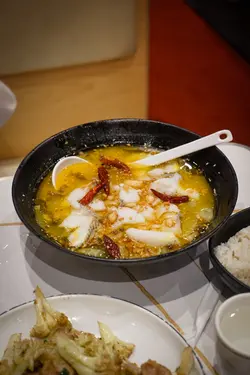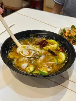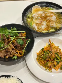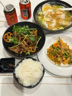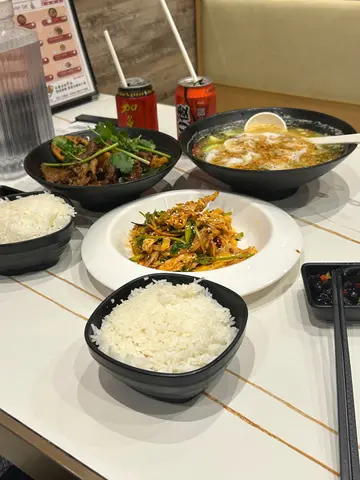 今次我同2个friend过左黎大围呢边踩单车,踩完佢地话过黎呢边食间抵食川菜,我本身运动完就冇预食辣,不过佢地想食就跟佢地食啦🚲呢间餐厅佢环境似茶餐厅,都好多人黎食,我地都要排左阵队,要排队既餐厅多数都好食,唔系真系唔会晒时间排😗酸菜鱼饭($88)呢个酸菜鱼一人份量黎讲算好多,我地3个人share都够食,个汤比较油,要捞个底既汤先饮得,味道算系重口味,捞饭就好好食🐟酸辣肥肠饭($70)个肥肠系有d酸菜加入一齐炒,但系唔太觉有酸味,辣味比较多,肥肠大大粒,同样都系份量较多🐷鲜椒雪花肥牛饭($81)呢个鲜椒雪花肥牛反而唔太辣,d椒炒得几惹味,个肥牛唔算肥,似系牛肉片咁,份量相对系适量🐮跟餐送纸包饮品,可以加钱转罐装,比较特别既系呢度有天地壹号苹果醋🧃甜品桂花冰粉老板娘见我踩完单车食辣野食到身水身汗,送左碗冰粉比我消暑,甜品适中,咁热食系几爽,多谢老板娘请我食✌🏻呢间川菜既一人客饭都几抵食,个𩠌几大碟,仲包埋野饮,就算share个𩠌都够食,每份餐唔洗$90就食到我觉得系好抵👏🏻…查看更多