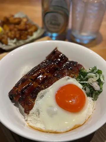 黯然销鱼饭有葱花、煎蛋、鳗鱼又系先俾只太阳蛋先吸引,鳗鱼差唔多有大半条,厚肉,肉质嫩滑,鳗鱼汁挂在鳗鱼上面。加上葱花除咗增添色彩还提升了层次感,又一送饭之选。