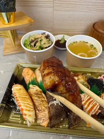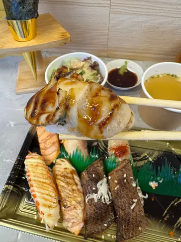收工后揾到附近呢间日本料理店,坐低嚟个一人定食,好似真系模拟咗东京Solo Trip咁~滋味满分! 🍱 竹极尚寿司定食- 鳗鱼同三文鱼腩烧得香喷喷,鱼油脂滑,入口即化🐟🔥 - 左口鱼同油甘鱼寿司嫩滑,充满炭烧香💥 - 北海道带子鲜甜弹牙,醋鲭鱼酸香清新🦪💚 - 芝士玉子浓郁香滑,辣味鱿鱼略带刺激又醒胃🧀🦑 - 黑椒大赤虾寿司肉质鲜美,带少少胡椒香气🦐✨ - 加州卷清新爽口,搭配沙律菜同面豉汤,够晒丰富🍜🥗 🍗 炸搪扬鸡- 炸鸡外层脆口,内里嫩滑多汁,食得好爽口!🐓🔥 香葱拖罗蓉手卷 - 拖罗蓉鲜滑,配埋香葱,真系鲜味升级💚 呢餐丰富到感觉下一秒会飞去东京,推介比钟意日式料理嘅朋友啦💛
