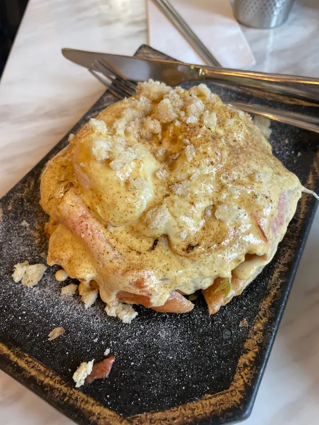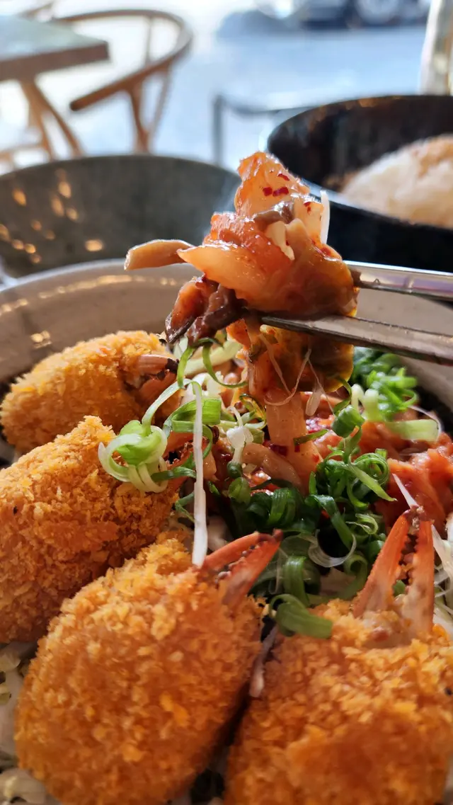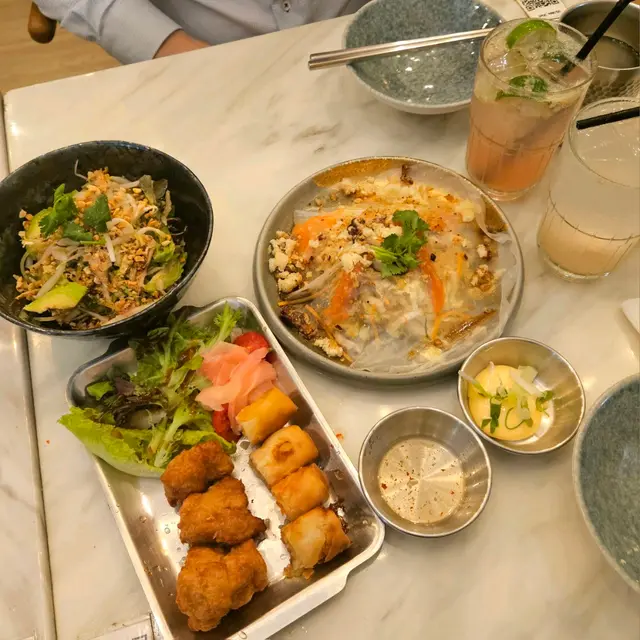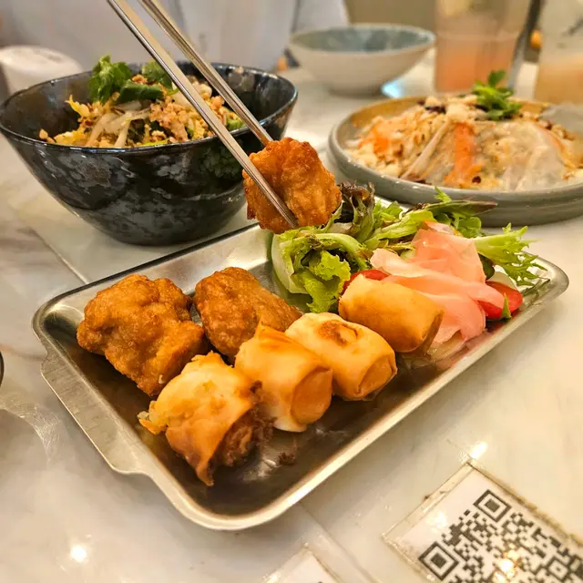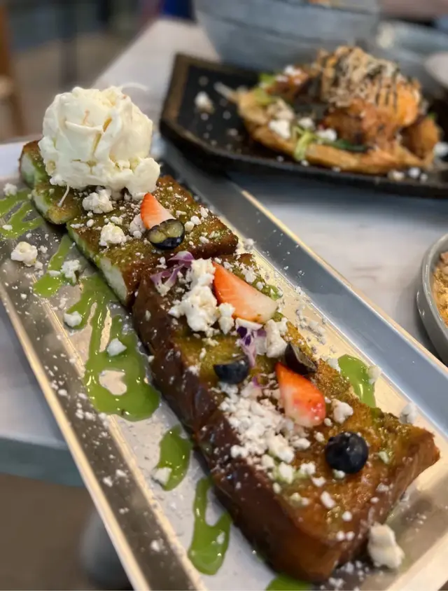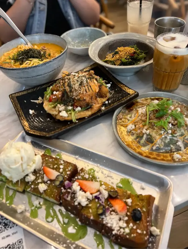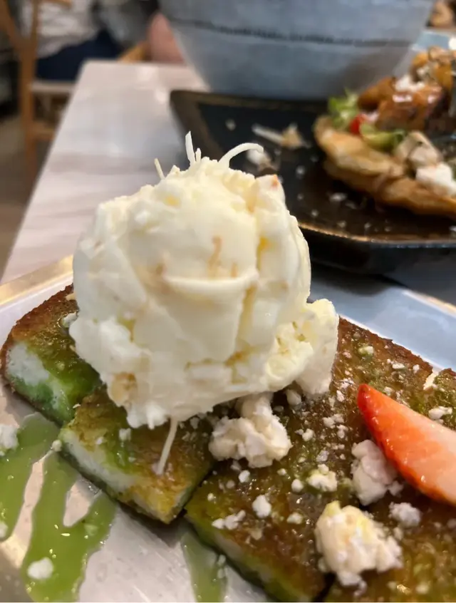 證明我真的一段很長時間沒去過朗屏了這間餐廳可說是附近幾間餐廳中最多人幫襯滿座的餐廳😂· 班蘭蜜糖厚多士配椰子雪糕 這個真的很好吃😋👍🏻特別係個椰子雪糕 完全為這個厚多士提升到另一個層次 剛做好暖而香脆的多士真的沒有不愛的理由🥰· 印尼薄餅炸雞明太子賓尼廸蛋 這個菜名就已經說了這道菜有些什麼了印尼薄餅超好味 配上了另一道菜的龍蝦湯 直接打上100分 炸雞也是炸到香口鬆脆😋· 蝦肉龍蝦湯拉麵 因為習慣了等待所有菜式全上菜才吃開頭還以為等太耐拉麵會發漲 原來沒有龍蝦較為濃郁 才會像發漲了一樣(純屬誤會)龍蝦湯味道濃郁👍🏻 但個人認為好像跟拉麵不太襯 可能配意粉🍝/通粉會更啱😋· 越南米紙沙律 由上菜到吃完 我都懷疑這道菜究竟有沒有上錯了究竟這道菜是什麼來的 200個黑人問號甚至乎食完都唔知道這個是什麼東東 明明在ig 的圖片不是這個樣子的真的懷疑人生了· 馬拉盞通菜 就是很普通的馬拉盞炒通菜• 泰式凍奶茶 看到社交平台 推薦的 但…嗯……普通• 荔枝冰 嗯…就是荔枝味的飲品🙂總括來說 我是會為了甜點 班蘭蜜糖厚多士配椰子雪糕 再來的 但鹹點就普普通通😅…查看更多