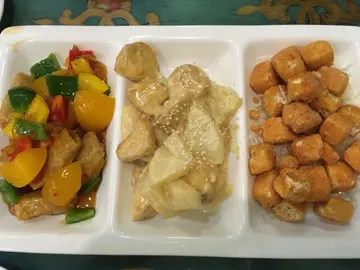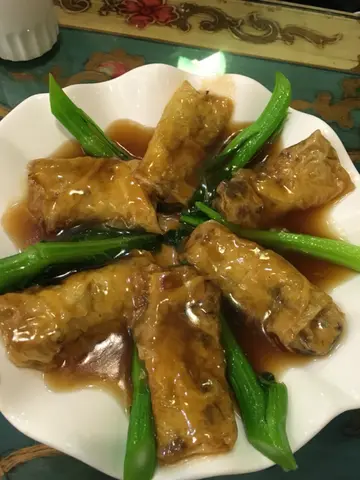 晚饭一共点了5菜1汤,我们根据菜单上的「东后斋十大必食菜式」来选择:黑松露炒面、杏汁愉耳汤、甜酸虎辣五色拼盘、雀巢炒锦绣腰果、香煎芙蓉鲜竹、菜心腐皮卷。每款菜式均非常油,𩠌菜碟底皆有一层厚厚的油...... 令人非常失望..... 最好味的是菜心腐皮卷,可以食材没有特别亦索价$120,实在有点贵。甜酸虎辣五色拼盘味道是ok的,但$298亦有点物非所值。。。。:(席间发生了小插曲,因为旁边一台客人高谈阔论得非常夸张,嘈到我们自己谈话亦听不到,头都痛了。我们过了廿分钟向侍应姨姨反映可否帮忙劝告一吓,可是姨姨反了一吓眼,说「小姐,这是人生自由,我不能阻碍客人说话的」