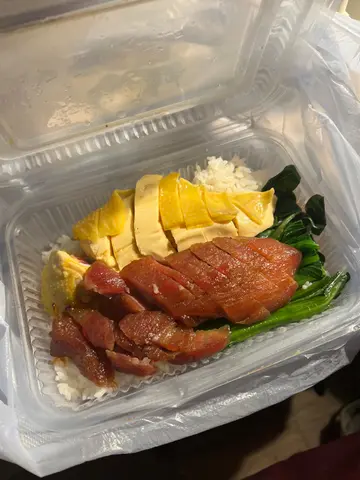 中午上来鹅颈街市,若是为了食烧腊的话,尤其是烧鸭,好多人心目中只有《清真惠记》同《海记》。其实街市熟食中心内仲有一间富有水准的烧腊店,名字叫《东成烧腊饭店》。可能是位置问题,人人一入街市,都会被前面两档挡了去路,位于街市深处的《东成烧腊饭店》,仿佛只有知心人才会来光顾,不过中午要在《东成》找一个位,其实不是容易得过《清真惠记》同《海记》多少。是日同老食友 J 两个人来,根据我上次与另一食友 C 的经验,两个人,来半边烧鸭右一碟双并饭大家分就最实际实胃。先说饭,我们二人合力去消灭一个叉烧烧肉饭,叉烧半肥瘦,很难会不好食,而烧肉的向来都觉得《东成》做得很好的,即使肉比较瘦,佐入口依然是够腍的,而且烧肉皮带酥脆,很是好,只觉得其卖相求其了少少,不过我们食街市,食物卖相不是重点。烧鸭,皮脆、油香、膻香,再者是鸭子够大,肉亦够厚身,而鸭的香油,由皮慢慢地,经过厚身的鸭肉直达碟底,一口皮脆油香的烧鸭,一口暖暖绵绵的米饭,是享受,在此时,我心中又想起玉冰烧了。有水准的烧腊店,往往都是隐藏在街市内,要有心才能够发掘到出来的。…查看更多