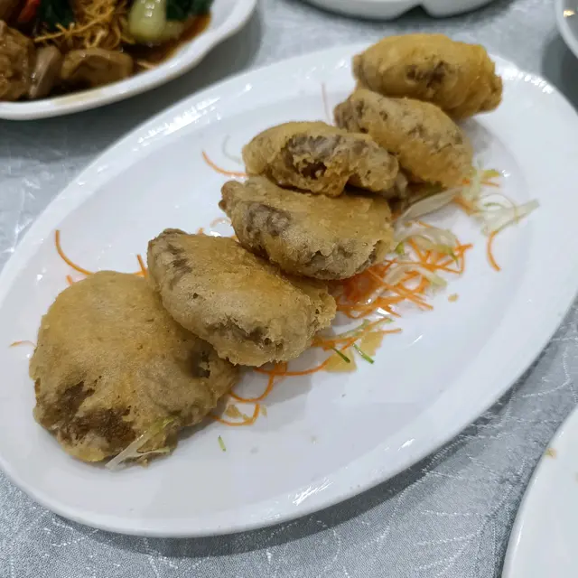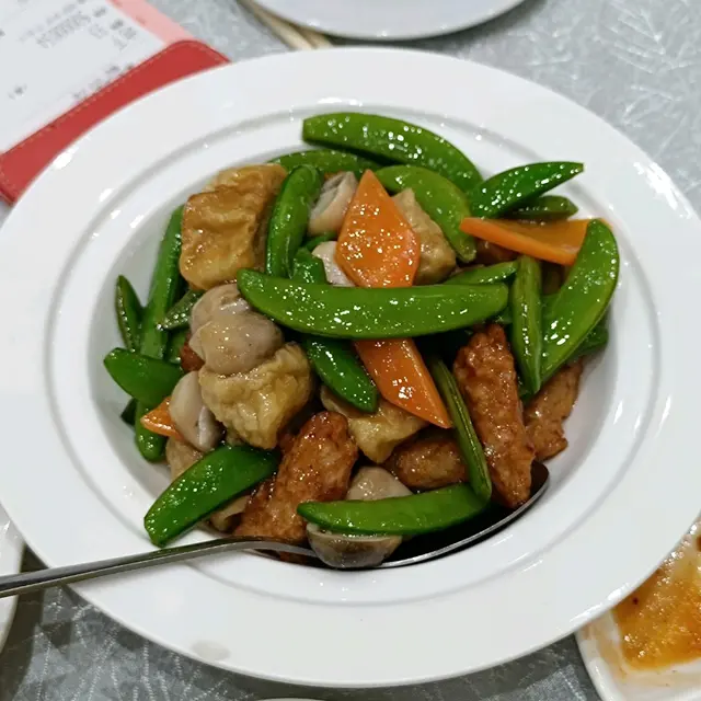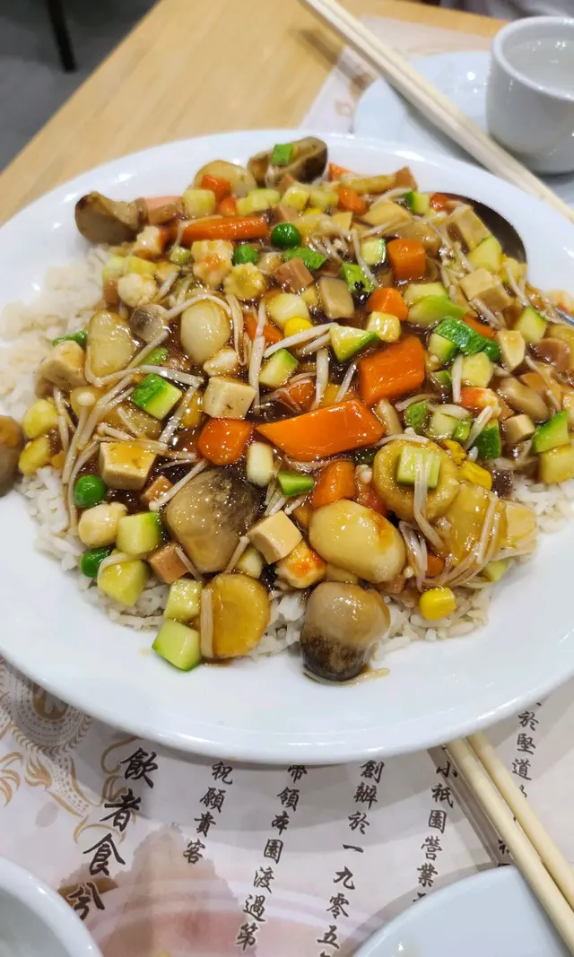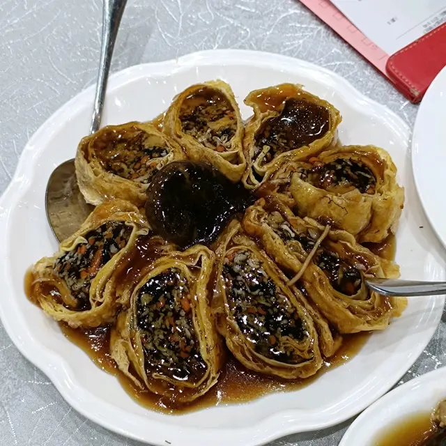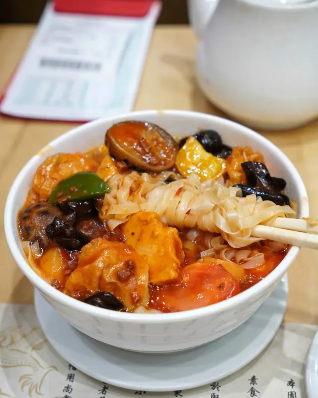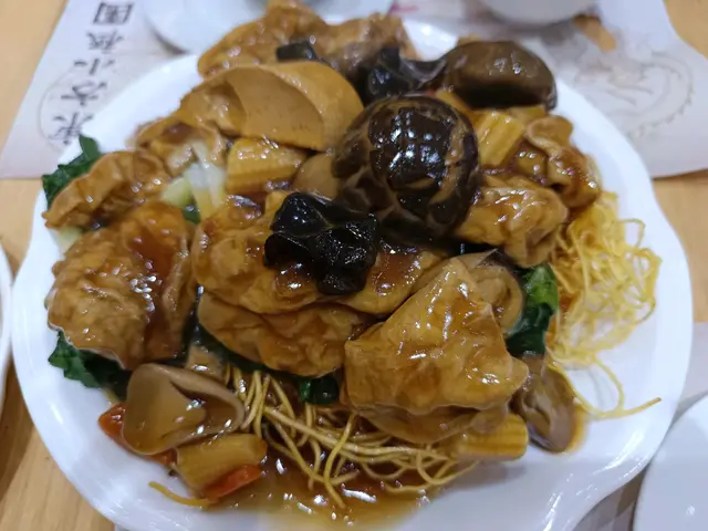 When I was still a secondary school student, I usually went to the bus stop in front of this restaurant to take the bus home. Just knowing that it is a veggie restaurant, and I was not particularly interested in the cuisine, I did not pay any attention then. I was surprised to know later that they had such a long history, opening in 1905. Today, we came to Wanchai to try it out.Even though it was already 1:30pm, the restaurant was packed, but the staff helped to arrange a table for us. Having renovated, it has a neat ambience, with bright lighting, and some Chinese calligraphy decorating the walls.Starting with the most common, Buddha’s Vegetarian Pot Stewed Delight 佛門齋滷味 ($72 for small), it is an assorted mix of different delicacies, using wheat gluten to make vegetarian char siu, duck kidney, chicken, plus the different flavors of sweet and sour, curry, and oyster sauce gluten. Apart from the sweet and sour gluten, which is quite nice, the rest are only mediocre. We also order two dishes, including Fried Pipa Bean Curd 琵琶豆腐 ($88) and Braised Monkey’s Head Mushroom with Broccoli 鮮猴頭菇扒西蘭花 ($90). The pipa bean curd is quite nice, with the deep-fried minced bean curd balls soaking up the oyster sauce which is quite nice, and there are also some choi sum on the side for complement.The monkey’s head mushroom has a good texture, and no wonder many people would use this to replace meat as it has certain similarities in taste. The chef cooked this together with some straw mushroom and broccoli, but the broccoli unfortunately has not been soaked and cleaned well, and we did find a worm which apparently put us off.To go with the dishes, we have Congee with Sweet Corn and Diced Mushroom 粟米菇粒粥 ($55). The portion is enough for two people, with the congee having a nice cotton texture, with the sweet corn and diced mushroom giving a bit of crunchy bite and fragrance.Service is decent, but we can at the same time see a neighborhood ambience from the chats and dialogues between the staff and customers. The bill on the day was $329 and while the food is not particularly impressive, it is an anchor and should be cherished as an old HK establishment.…查看更多