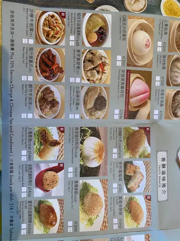 呢间酒楼最大既特点系一笼点心得一粒,而且个奶黄包好得意,有个公仔系个包既面,系流心奶黄包,外型好,味道又好。南瓜粥都系呢度既一大特色,粥底好锦,同南瓜一齐配合得好好。珍珠鸡亦都好入味,非常之引人入胜。炸两肠粉既炸两好脆,软既肠粉皮加炸两有两种口感。小笼包汤汁都几多,肉质唔错,新鲜。粉果都好晶莹,馅料都唔错。黑蒜海鲜酥好香口,但就无咩黑蒜味。酒楼望到海景,好靓景。