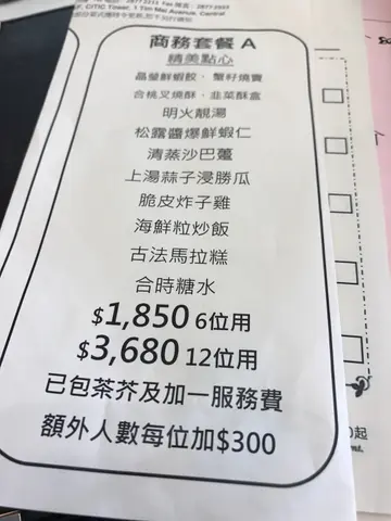 Two friends and I met for early dim sum lunch at 1130am on a weekday. We chose to meet early to avoid the work crowd. It is a good time to try this restaurant - there was only one other table occupied and the service was attentive. The dim sum was also delicious - and we forgot to take photos!We enjoyed: - char Siu bao (steamed roast pork bun)- har gau (steamed prawn dumpling)- chicken feet- vegetarian dumpling - pan fried radish “cake”- steamed rice roll with dried shrimp- sau bau (birthday buns)The steamed vegetarian dumplings were especially good - often I find the dumpling wrappers can be a bit too sticky but this was perfect.By the time we finished, the restaurant was full and it was very noisy. The acoustics are not the best and we found it hard to hear each other. But the food and lovely sea views make this a place I would come to again.…查看更多