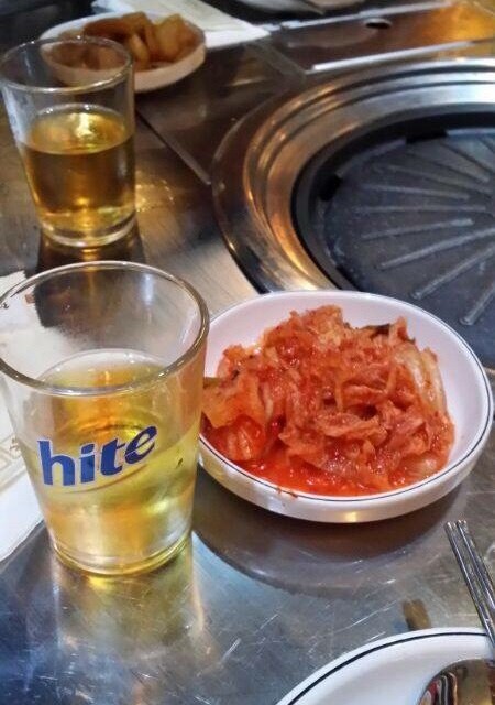 一推开口, 见到韩国人老板围埋三五知己食响门口张枱食韩烧,然后用韩文打声招呼, 好韩国FEEL呀!!!预先奉上枱面既前菜, 可以话成晚餐最好食!!真系韩式泡菜啰!!餐厅正播韩星演唱会, 连店内都张贴住,佢地既海报顿时又真系好似去左异地旅行