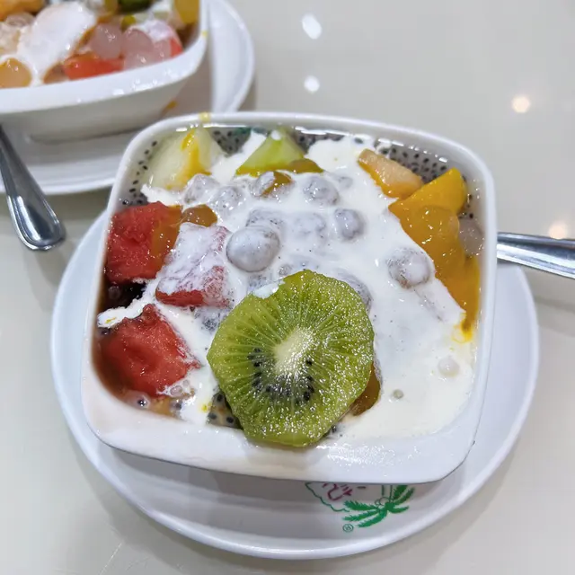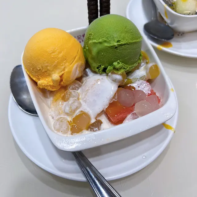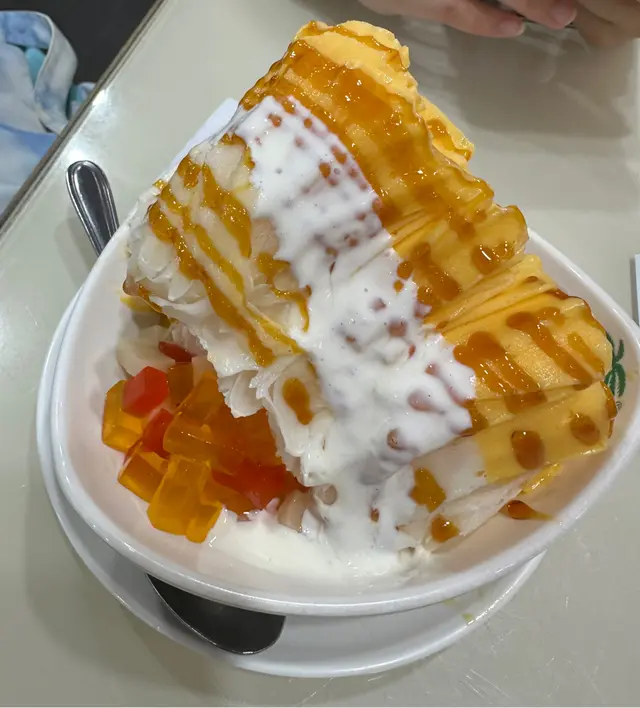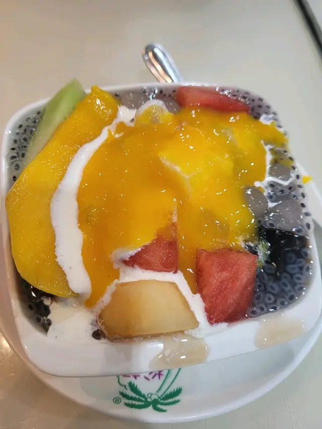 鮮雜果單色綿綿冰($46)綿綿冰口味可選:朱古力、芒果、豆腐,揀咗芒果。醬汁可選:朱古力、士多啤梨、焦糖,揀咗士多啤梨汁。配料可選:三色Q果、Oreo碎、爆珠、可可米、大西米、紅豆粒,揀咗爆珠+紅豆粒。太耐無食綿綿冰,雖然都知道口感及味道大致係咩,但食落仍然好有新鮮感。口感綿滑,無食刨冰嗰種凍到頭赤嘅感覺,配以芒果口味,酸酸甜甜,十分醒神,加埋士多啤梨汁同花奶,味道層次再提升。鮮雜果有芒果、西瓜、哈密瓜,清爽。爆珠“酸may may”,紅豆粉腍甜。補腦合桃糊($27)合桃味是有的,但唔算太濃厚,味道還算可以,合格之作。…查看更多