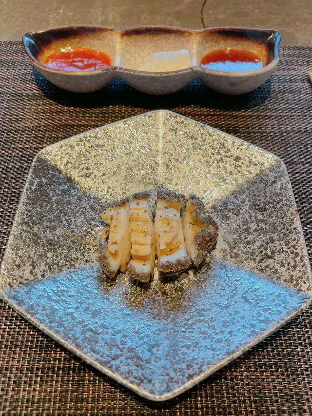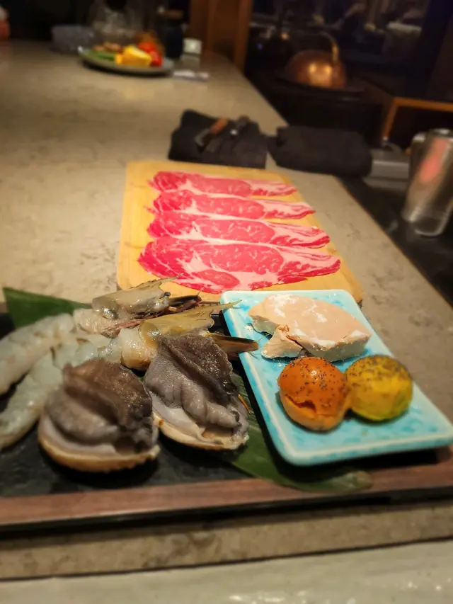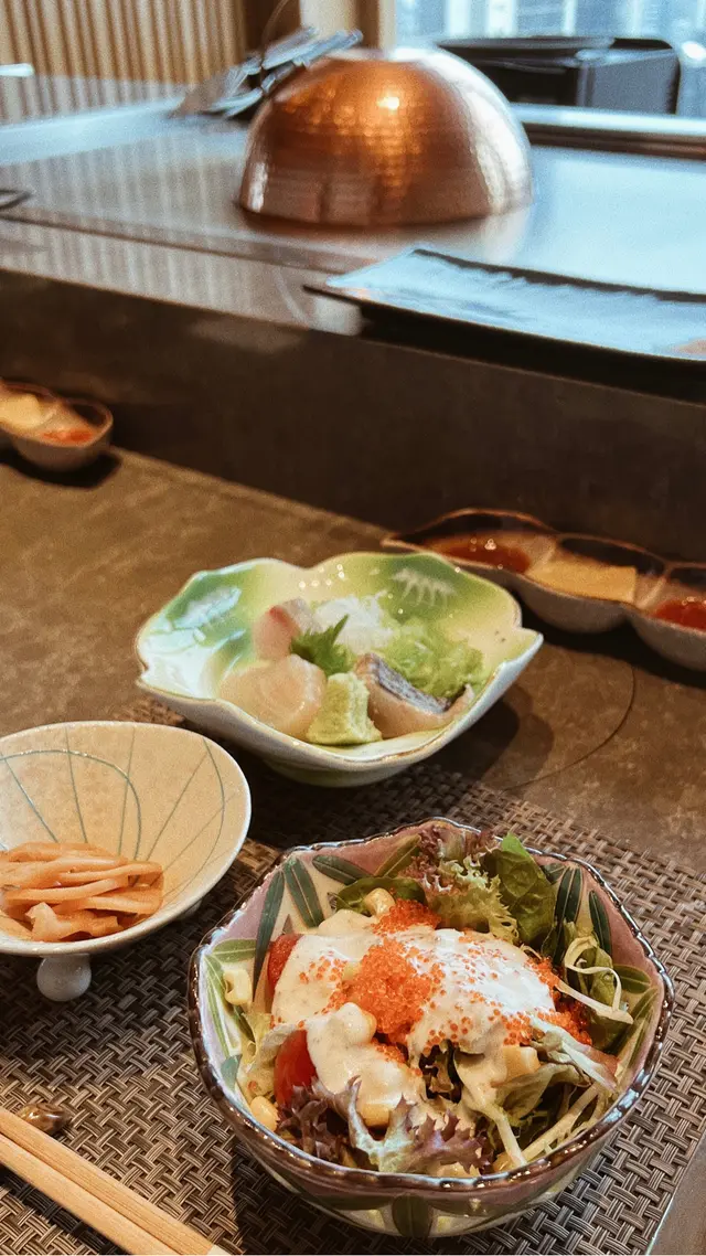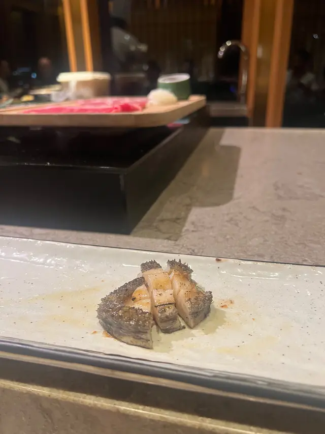 之前月生日朋友請食飯請咗我呢一間板神食,早兩個禮拜book既枱,好彩仲有吧檯位餐廳而家做緊感謝祭$ 398蚊一個人鐵板燒14品, 唔同部位要再另外加💴我同我朋友分別嗌咗唔同set🐮set1 澳洲和牛厚燒($448) 🐮set 2 和牛A5厚燒 ($648 )再加咗支細清酒 同正常鐵板燒餐廳一樣 佢會將啲材料放喺你面前畀你影相,我哋兩個人所以佢就將兩個人嘅份量一齊放落同一隻碟度海鲜有蠔有鮑魚同埋蝦另外有少少前菜同有個甜品 前菜有幾塊刺身同一碟沙律,加小拌菜。之後係煎蠔味道都正常。食完之後就上煎鮑魚,鮑魚煎得唔錯火候控制得幾好。另外佢係用咗啲香草牛油去煎 ,所以調味嚟講都唔單調。再之後煎埋隻蝦,呢個都正正常常之後有啲🥬烤蔬菜用來間場,仲有個麵豉湯 再之後就入正題 :🐮澳洲和牛同A5厚燒 個牛佢好似會問你想要幾多成熟,但係推薦好似係五成,所以我哋兩款都嗌咗五成熟。個師傅知我哋點咗兩款餐好好人問我哋會唔會想人一半,我哋話ok於是左於是乎佢將兩塊牛分成八件再畀我哋每人四件四件 。兩款牛食落都好好味 ,A5嗰隻油脂感重少少入口即溶,澳洲嗰隻就肉味重啲稍為有少少咬口,但係都好好味。如果約兩個人嚟食我都推薦一人叫一款唔同嘅,我見隔離枱嗌咗薄燒係一塊薄牛肉包住啲蔥花,跟住一人有兩塊定三塊,對比起來講一定係嗌厚燒正好多 。食完牛之後就係一個和🍚牛炒飯,和牛炒飯炒得好香 ,粒粒分明口感幾好,同埋份量都足。之後甜品有🍡蕨餅同埋焦糖煎多士:蕨餅軟糯唔黐牙,個多士香脆易入口,用嚟埋尾好唔錯。 我哋叫呢款🍶清酒 ($250 300ml) 比較輕身清爽,少少甜好易入口,用來配鐵板燒一流,推薦大家都嗌細細支可以解腻 。坐吧枱其實都幾過癮,有得食有得睇,同埋今次睇得出我哋呢個師傅手勢唔錯 呢間餐廳整體嚟講幾好,性價比唔錯,食物質素都好好,環境氣氛都冇咩可以彈,唯獨是佢人手唔係好夠有時叫佢加茶叫咗幾輪先有人過嚟,可能係因為我星期六晚過嚟,睇得出佢所有枱都坐滿 。…查看更多