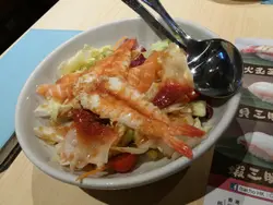 什锦刺身丼定食 - 三文鱼、吞拿鱼及油甘鱼块块厚切,肉质软滑,味道一流;虾肉和带子新鲜,甜美滑嫩,完全没有冷冻感觉和雪藏味道。蟹籽新鲜爆脆,渗出海洋气味。粟米粒清凉爽口,蛋块带甜。碗内的珍珠米十分软绵,一点都不干硬,在拌匀肉类及豉油后进食,鲜味感觉立即提升。【推介之选】❤❤❤