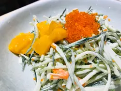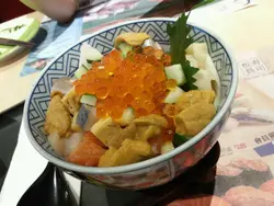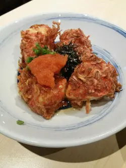这间寿司店好似食过一两次,今日同朋友来了,叫左一碗刺身饭,卖相也是好吸引呀,有海胆都几多,三文鱼子也多,希灵鱼,剑鱼,三文鱼等等,有d生姜,青瓜粒,也是好丰富同新鲜的,只是d饭有d实。'另外叫了刺身沙律,上面有d柚子汁,好fresh呀,有熟虾,三文鱼,北寄贝,有些沙律菜,车厘茄,都好新鲜呀。樱花虾炸豆腐,上枱十分香,有4件的,有d紫菜蟹子舖面,个豆腐外层俾樱花虾包住,好好味㖞又够香口,入面豆腐好滑!
