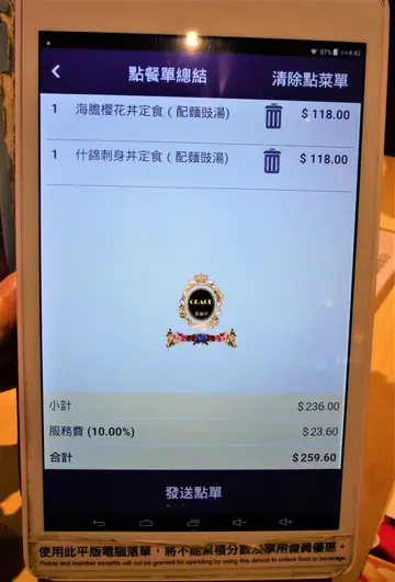 以先进科技产物来点餐,直接传送去厨房,舍弃传统餐牌,变得更方便快捷,值得一赞!