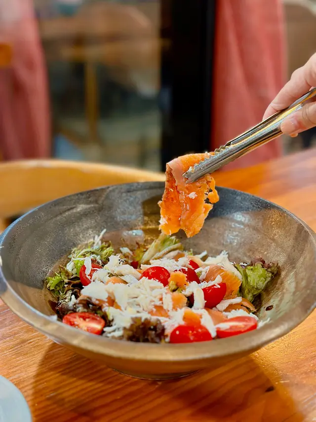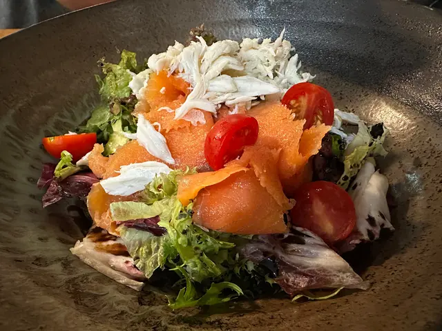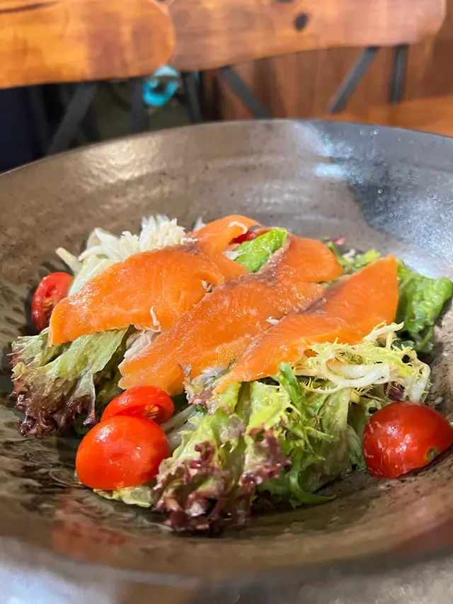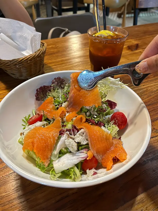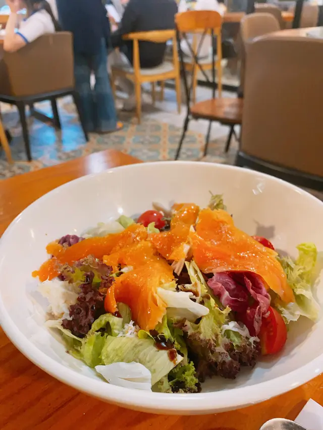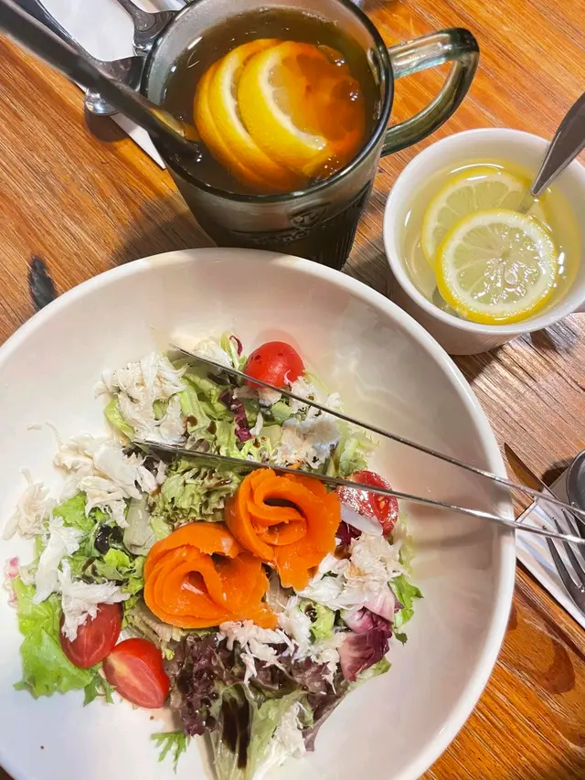 蟹肉煙三文魚沙律配油醋汁