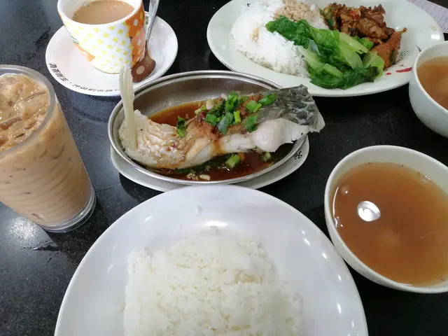 鯇魚個腩大大舊,滑捋捋好肥美,有得揀魚頭/魚腩+15分鐘即蒸,啲肉唔似整定擺咗好耐咁霉,雖然魚肉蒸得嚡咗啲,但條魚本身幾鮮甜,偶爾食到魚鱗,魚皮刮乾淨啲就更好,凍奶茶比例啱啱好,唔會太甜或茶太澀。整體質素幾ok,價錢合理嘅茶記餐。好過平時遇到啲fake人嘅茶記又貴又難食。廚房開放式,見到廚師都有帶口罩,有時見啲茶記廚師唔帶口罩/帶係鼻/下巴都接受唔到,疫情期間起碼有公共衛生常識都已經好過好多茶記餐廳。…查看更多