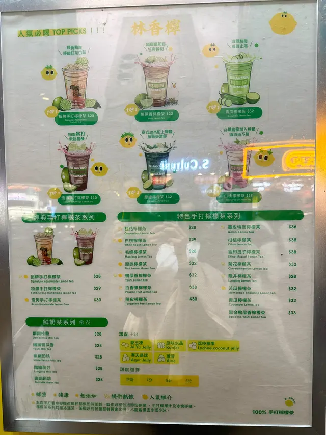 林香檸好出名經過旺角就想去試下鮮黃色嘅店面設計好搶眼可愛林檸仔就係佢地標誌今次飲最出名嘅新鮮手打檸檬茶林香檸選用七至八分熟嘅綠皮檸檬手打果汁加上用慢火熬煮紅茶為茶底入口清爽唔太甜但太多冰 幾啖就飲哂唔夠喉查看更多