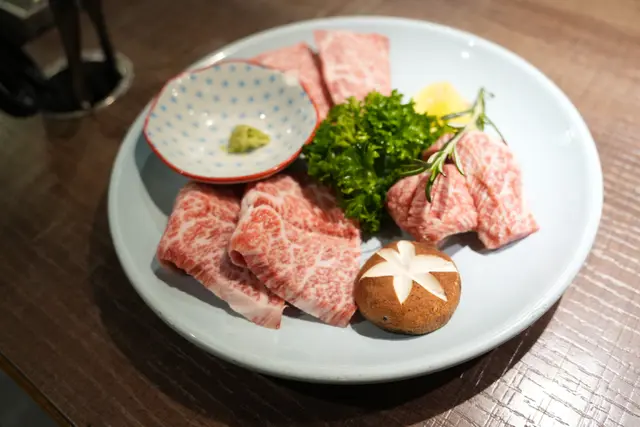 枱與枱之間距離夠闊, 坐得好舒服!!侍應會幫忙燒肉、睇火,唔使自己忙晒~~ 講解菜式又有禮貌, 啲用心位真心feel到~壽喜燒牛肝菌和牛 (2件) $185壽喜燒個汁甜中帶鹹, 有濃濃醬油香味~配上薄薄嘅和牛片, 油花分布靚到似大理石咁, 落鍋涮幾秒即收汁