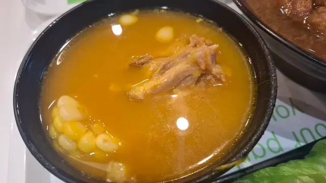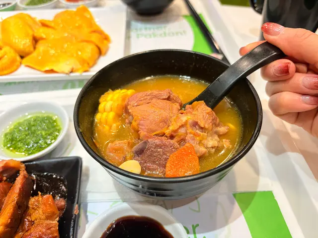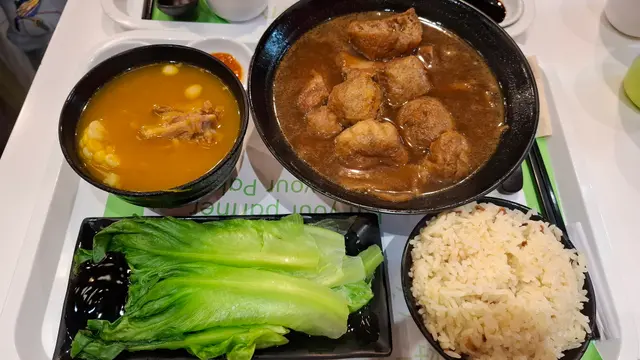 肉骨茶具有活血散寒、增強免疫力、健脾養胃、補充鈣質等功效,尤其適合體質虛弱、脾胃不佳、容易手腳冰冷或長時間處於冷氣環境的人士食用,有助於提升體力、驅除體內寒氣、促進血液循環,並預防感冒等秋冬疾病。 肉骨茶中含多種滋補藥材,能調節免疫功能,增強身體機能,有助於預防感冒、流感等疾病。 我本身都很喜歡喝中藥湯,嘅補身又好喝!這個肉骨茶正合我意,藥材味很濃很香,還有排骨和豆卜,排骨煮的軟嫩,一咬就分開,豆卜完美吸收了肉骨茶的湯汁精華,配上白飯一起吃,真的超正這個價錢有湯有肉有飯,CP值超高!套餐仲有菜同湯加小啫喱,都好抵食…查看更多