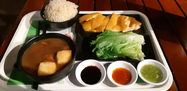 今晚約了朋友行紅磡,太久冇行這地方,我們週圍行,行下未見過這間酒店,入去看下,一路行見到酒店入面有個美食廣埸,看下餐廳,見這間海南雞飯店餐牌不錯,都要找餐廳吃晚餐,不如在這兒吃,環境舒服,看了一會叫了二人套餐-極品海南雞半隻/日本迷你蒟蒻啫喱