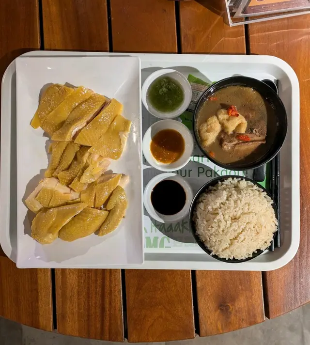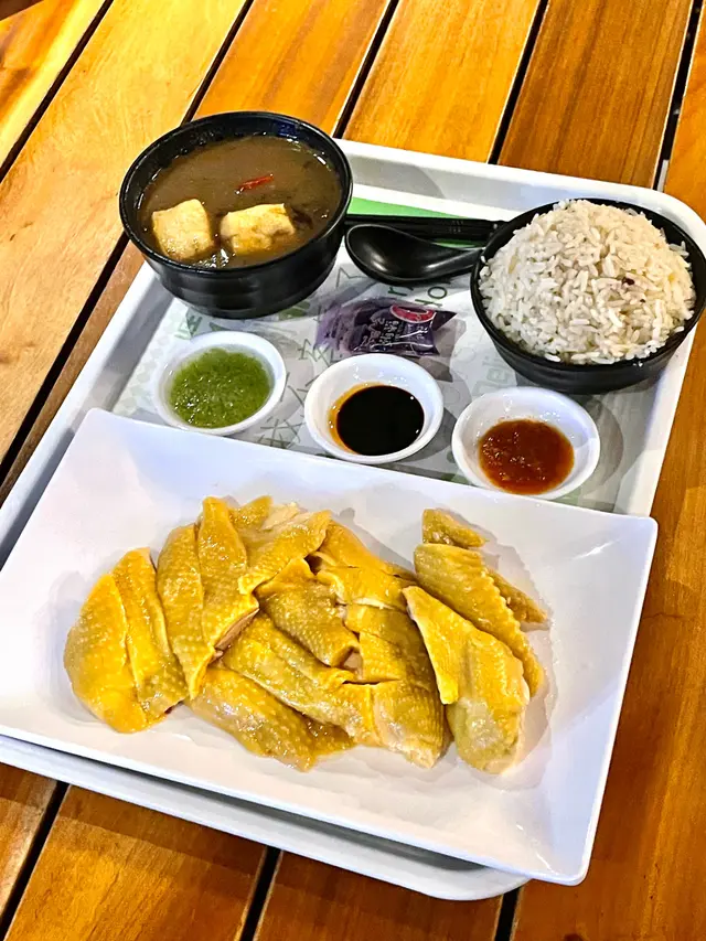 2份選了雞油香飯,飯爽身油滑,好香雞味,無骨雞肉身,特别軟霖嫩滑,濃郁鮮雞香味,一咬嘴嚼到,啫喱一口吃到二人套餐-滷水元蹄/健康翠綠時菜  :)