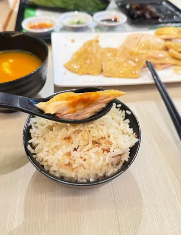 今日和朋友去荔枝角买宠物用品,买完之后见到这间海南鸡店,即刻坐低吃个饭先回家呀!超抵二人套餐🍱🥢栢档极品去骨海南鸡肉质非常细腻, 口感嫩滑多汁,品尝鸡肉最纯粹的本味。你会感受到鸡肉的清甜和嫩滑,鸡皮的爽滑和肉质的细腻在口中融合。三种灵魂酱有黑酱油,质地浓稠、味道带甜的黑酱油,能为清淡的鸡肉瞬间增添浓郁的焦糖风味和咸甜口感。辣椒酱味道鲜辣开胃,带有一丝清爽的酸味,非常解腻。姜蓉酱姜的辛辣温和不刺激,能提升鸡肉的香气,带来温暖的口感。🥢肉骨茶肉骨茶的味道非常独特且富有层次,浓郁药膳肉汤。用多种中药材和香料熬制而成的汤底。选用的猪肋排经过长时间炖煮,肉质变得极其软烂,用筷子一夹就能骨肉分离。肉块充分吸收了汤底的精华,味道十足。肉骨茶是一道香气扑鼻、味道浓郁、层次复杂、暖心暖胃的经典美食。🥢健康翠绿时菜唐生菜🥬新鲜爽脆口感清新香甜。🥢麻香小云耳小云耳质地爽脆、有弹性,咬下去会发出“咯吱咯吱”的声音,这种口感与浓郁的调味形成了完美的对比和结合。🥢鸡油香饭鸡油香饭鲜味会均匀地包裹住每一粒米饭,让原本平淡的米饭升华成一种充满肉香的载体。🥢热柚子蜜柚子的香气会随著蒸汽充分散发出来,有种让人瞬间放松的疗愈效果。浓郁的柚子果香很香甜又清新好润喉喝下很舒服。🥢桔仔水金桔的酸味非常直接能瞬间唤醒味蕾,比柠檬的酸味更带有一丝独特的果香味。🥢皇牌无味精靓汤红萝卜南瓜粟米汤,汤底很浓厚南瓜蓉好香甜加埋红萝卜粟米,真是绝配。…查看更多