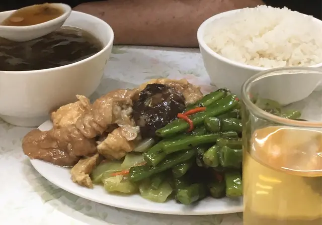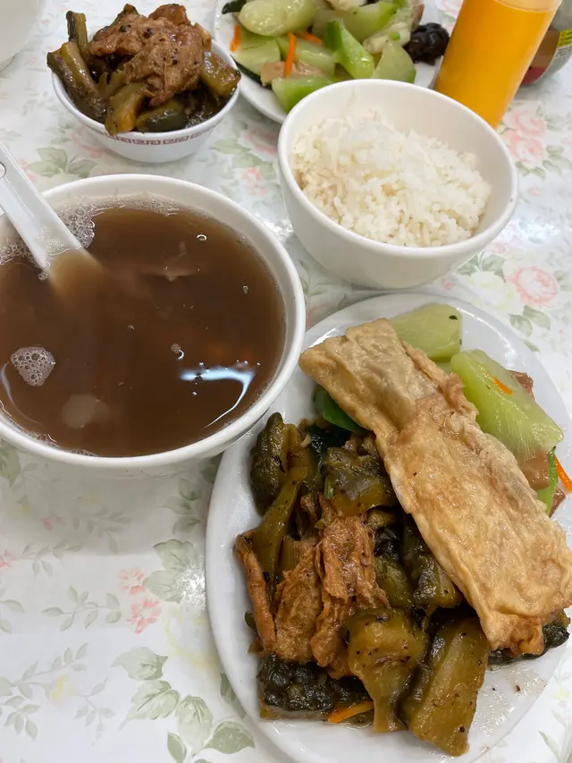 鵝頸橋街市熟食中心其實有好多美食,牛什燒鴨㗎喱,但每次我都總會把心一横,往根記走,因為由始至終,根記都是我心中香港最美味的素食店。沒來根記好一段日子,原來衹做3小時生意,沒晚市了。老闆依然和藹可親,提醒我加了價,其實$53 有3 餸 1湯 1飯,熱飯熱茶任添,餸不油濃,但每口你都會吃到食物的滋味,是親切的家常味,湯也真材實料,這個無花巧但美味可口的素餐,是無話可說的抵。走的時候,每間店都有少客人,熙來攘往,很是熱鬧,我很希望香港變回這個香港。…查看更多