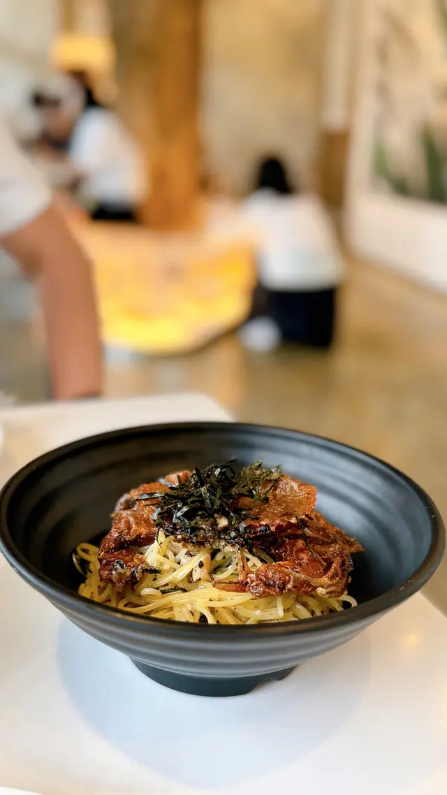 位於啟德體育館旁邊嘅一間清新Cafe🍲老闆呢就係Mirror嘅Jer~作為鏡粉,當然係因為柳而嚟啦聽講打卡靚,味道都好,試吓係咪fans filter先!🍝日式鰻魚意粉 $148日式鰻魚,但係配意粉呢個組合覺得幾有趣而且因為係鰻魚愛好者,所以就試吓啦由於啱啱去完京都食鰻魚🤣呢個意粉嘅鰻魚強烈對比下呢就……….其實都OK嘅,算係口肉又唔會好腥好雪藏味道都唔會好鹹,幾好味嘅至於個意粉,我係有驚喜幼身意粉軟硬度剛好,我覺得係相對微微偏硬,有咬口又好掛汁,日式醬汁少少甜,好特別,仲好惹味,食完一啖又一啖🦀軟殼蟹意粉 🍝$148至於軟殼蟹意粉上面嘅軟殼蟹相對失色雖然算大隻同厚肉但略嫌有少少腥意粉嘅忌廉汁都係好味嘅,同樣係好掛汁不過冇鰻魚意粉咁特別☕️Cappuccino $40味道正常好味(from 我老公🤣)整體食物味道係幾好,環境都幾靚如果擺盤餐具可以靚少少就完美啦咁樣好似會襯柳多啲絕對係去啟德附近食嘢嘅好選擇下次試埋小食先!查看更多