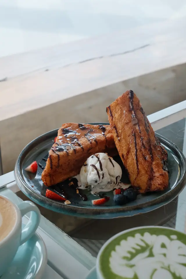 ☑️🪾根𝑹𝒐𝒐𝒕 𝑪𝒂𝒇𝒆餐廳原來由藝人-Jer開辦的🎤💫環境裝潢放有心思,白色牆身及灰泥平地🔳運用樓底高的優勢,配合主題在店舖中間放有一棵大樹幹🪾以落地玻璃引入的自然光🌤️帶出柔和舒適感💛✿法式焦糖吐司配雪糕 french toast賣相不錯✨🍞🧈不過食落驚喜不大🥸味道及質感似港式茶餐廳厚西多士面層淋上朱古力醬🍫但醬汁唔夠🤓有埋雲呢拿雪糕加持🍨還是偏乾😶‍🌫️伴碟配上士多啤梨和藍莓🍓🫐增加色澤,賣相加分😇