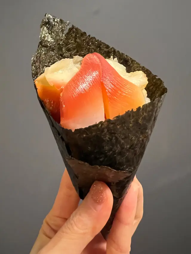 今日喺荃灣收工見有啲肚餓,就走咗去路德圍搵嘢食。見到呢間手捲店都幾多人排隊,就叫咗兩款手捲試吓。首先講個三文魚手捲,一拎到手就知無揀錯,三文魚色澤鮮亮,油脂分布均勻,入口軟滑又唔腥,真係夠晒新鮮!個飯煮得啱啱好,醋味溫和,飯粒分明唔會太濕或者太硬,同魚生配合得幾好。另一款芝麻八爪魚手捲就正常發揮,八爪魚有咬口,芝麻香氣幾出,不過無咩驚喜,中規中矩啦。整體嚟講,兩款手捲嘅材料都算足料,紫菜亦脆身,唔會擺耐咗就變韌。價錢方面真係抵讚,咁嘅質素,30零蚊就搞掂,性價比高到爆!雖然係立食,環境簡單啲,但係出品質素對得住個價有餘。如果經過附近想醫肚,呢度絕對係中上之選,值得回頭再encore!…查看更多