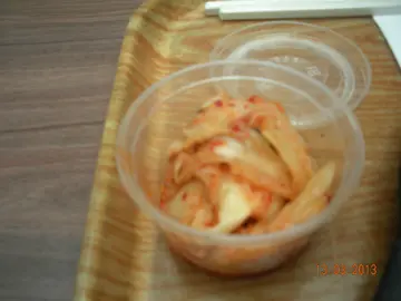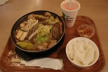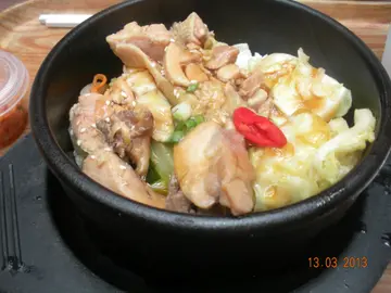 除了星期六日之外,经过好几天在公司挨饭盒,好不容易地今天走出公司办公,顺势在外午膳。由于仍有事要办,用餐时间也不敢太长,只好寻找一些可以快点吃完就走的餐厅。来到APM 的Foodcourt,同样有不少选择,而在下亦选择了梨花园吃个简约的午餐。从食物样本柜里不乏有石头饭和面食,在众多的样本中,选择了石头鸡肉饭配泡菜及饮品。而在下等候期间,一位店员正在把泡菜舀在细小的胶杯里,准备与套餐一并送上。拿在手里的石头鸡饭,仍然发出吱吱声响,坐下后一尝石头里的配菜,是椰菜也,很腍也是几爽脆的,鸡肉就不是嫩滑,但是有劲嚼,也有口感,只是米饭却很湿很稀烂,而且有点黏住一嚿嚿,像似是结了的粥一样。泡菜味道辛辣,但未至于辣到入不到口,辛辣程度是小辣。饮品方面只是汽水而言,不提也罢。整来说味道一般,不会说了好不好吃。另外等候时间却长了一点,不过还可接受。除了等候食物要花时间外,其等位时间也很快便可就坐。
