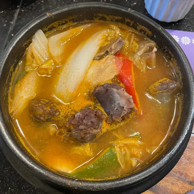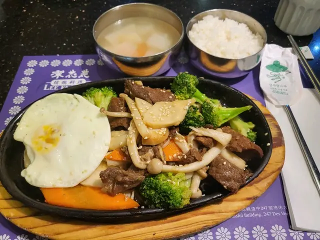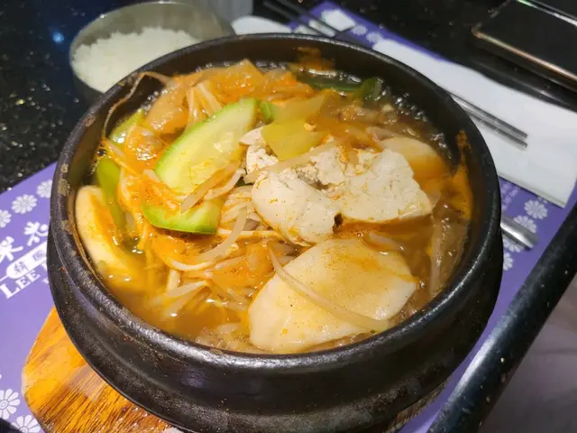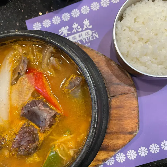 小门藏在走廊内,比较难找到,英文是Lee Fa Yuen 港式拼音而不是韩式拼音,猜到是香港人运营的韩国餐厅一进门扫安心出行码的手机反应很慢服务员是香港大叔,没有韩国兼职学生,顾客以港人为主,看到一个日本-印度家庭装潢很有爷爷奶奶辈的风格菜单上把韩国煎饼翻译为日文“御好烧”,中国人、日本人和韩国人都沉默了😅牛肋骨煲味道不错,牛肋骨软嫩,汤汁浓郁带甜味,很有妈妈的牛腩煲的感觉😋,适合拌饭,直接吃有点咸辣海鲜面汤没那么辣,配的青菜是香港常见的包菜,配茶也是港式,白饭要单点生牛肉杂锦拌饭加了辣酱很咸,西不西,日本不日本,韩国不韩国的隔壁桌烤肉yoiyan全部飘我们这边来了,有点呛,没有通风设备结帐前问要不要喝茶,有点懵逼叫服务员几次没理我们,少上了一个白饭,要催才记得上港式韩餐,本地化了,想吃正宗的不推荐这家查看更多