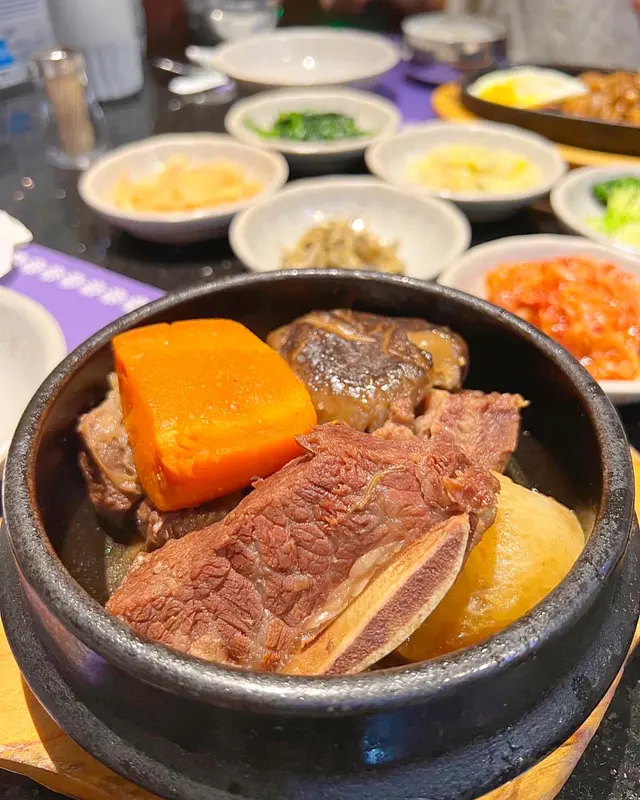 🍴梨花苑韓國料理📍上環德輔道中247號德祐大廈1樓性價比高既中上環午市之選✨午餐選擇多食物味道👌🏻服務就👎🏻🫢大廳滿坐被安排坐房,其實都幾好,靜靜地同朋友食飯~想叫侍應加水,提議放瓶水係房,我地可以自助服務,不過,係唔得既,話放入黎出面無水飲(內心小劇場:成間餐廳得一個水壺?)餐廳每兩人會比六碟前菜,個人覺得泡菜同酸蘿蔔絲醃製得最入味,酸酸辣辣,好醒胃😋炆牛骨煲 $115 & 炆牛尾煲 $115個餐仲會包個蘿蔔湯,蘿蔔煲得好腍無渣幾鮮甜。而無論係牛骨定牛尾都炆得極之入味,牛肉肉質亦十分嫩滑,煲內既冬菇蘿蔔完全索哂牛味🐮份量充足,配飯一流🍚 鐵板燒牛肉 $105牛肉油脂分布剛剛好,重牛味之餘,燒完之後仲鎖死肉汁🥩小編最怕燒牛肉燒到乾爭爭😇😇食飽既時候,朋友話以前有橙🍊佢仲未拎入黎既,抬頭一望先見到張告示,原來已經無左飯後果提供🙈✨✨順帶一提,使用用恆生信用卡有九折優惠🫢#hk #hkfood #hkfoodie #hkig #香港餐廳 #香港食好西 #香港好去處 #假日好去處 #中環 #中環美食 #上環 #上環美食 #韓國菜 #central #sheungwan查看更多