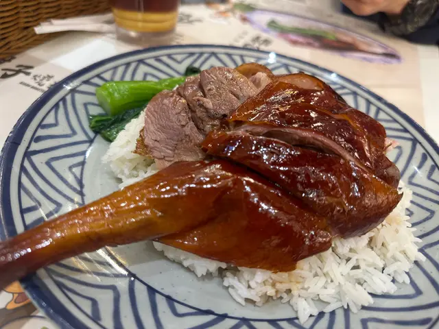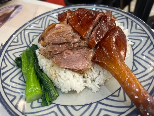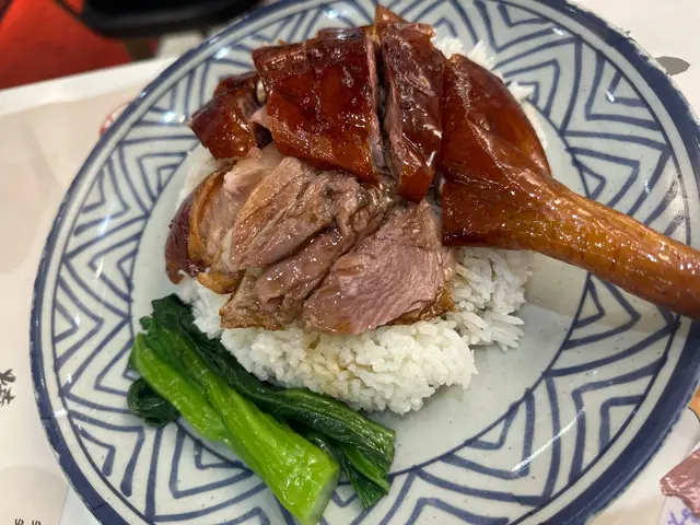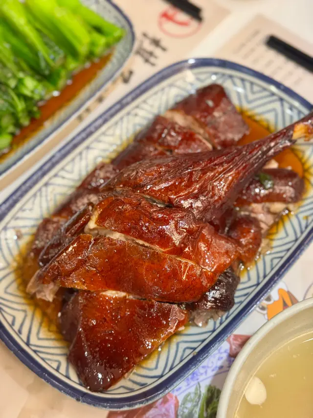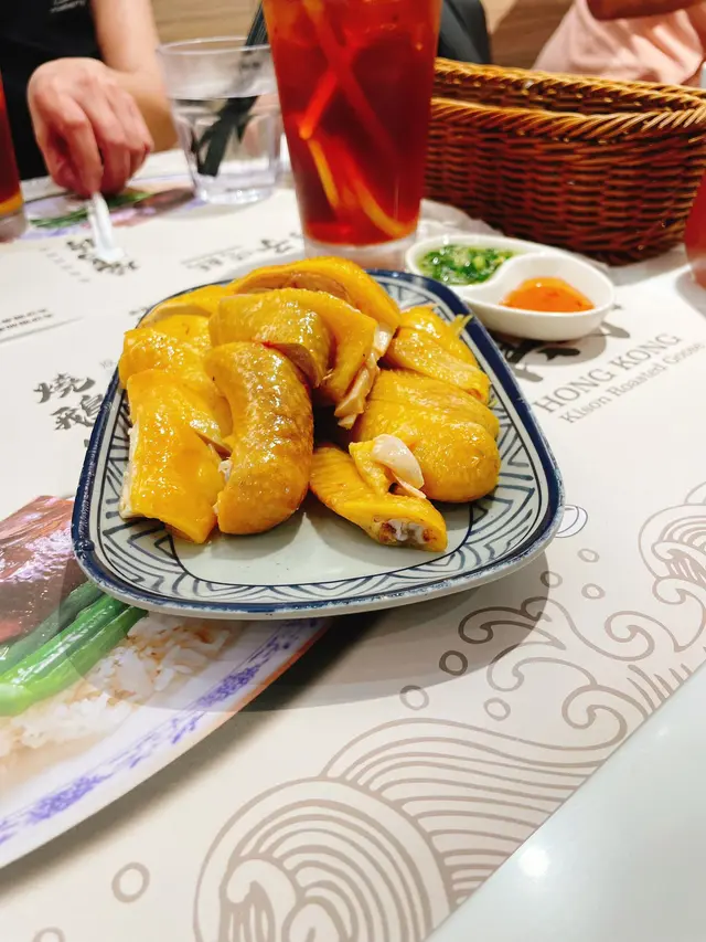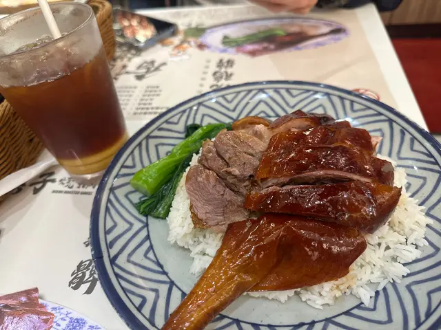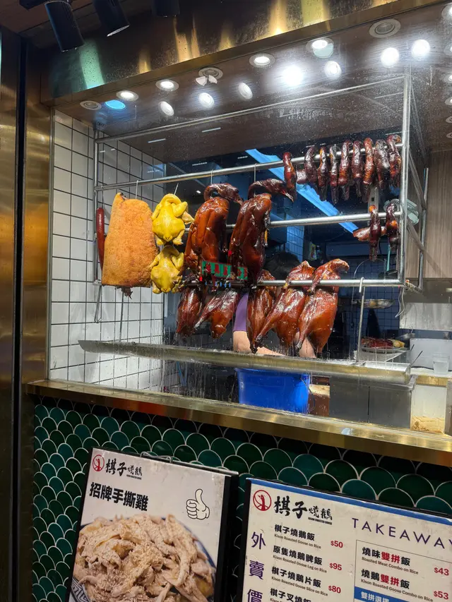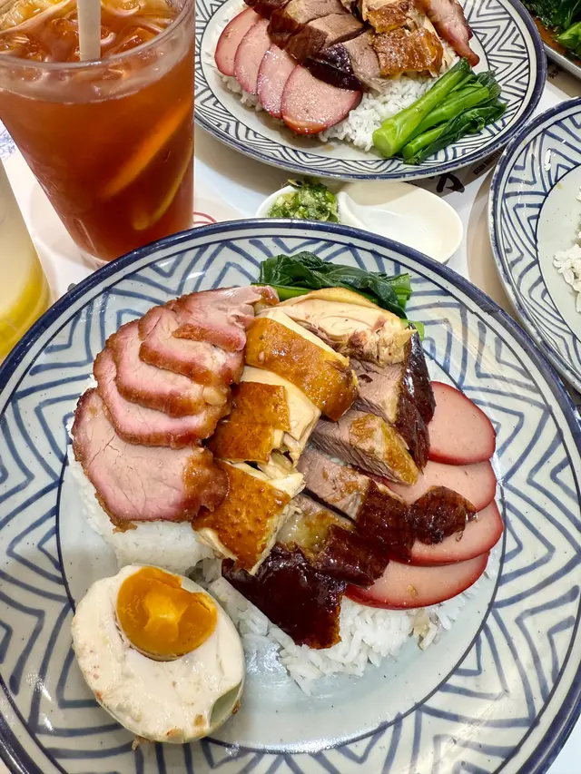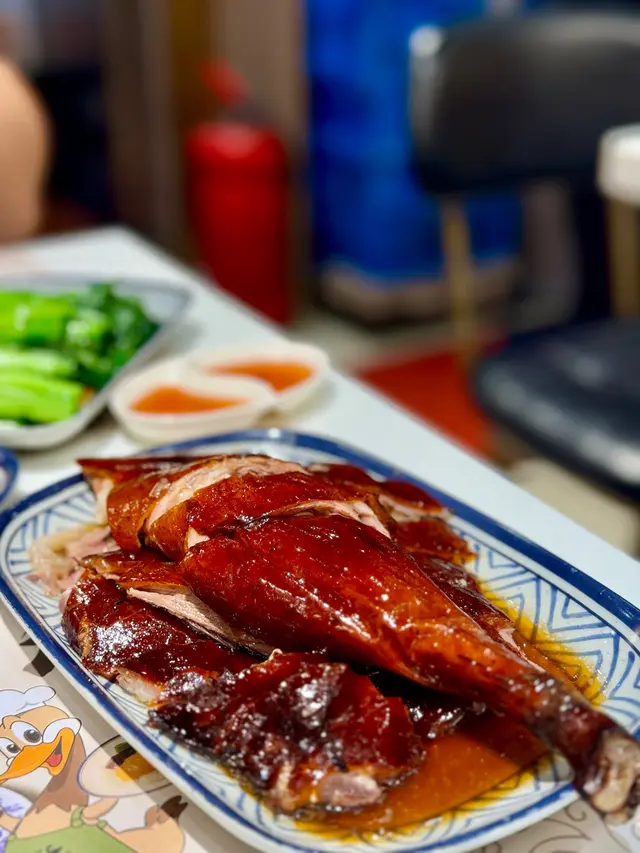 👉🏻棋子烧鹅片饭+滑蛋强推!烧鹅绝对是镇店之宝!刚端上来就被油亮的外皮吸引,咬下去“咔嚓”一声超清脆,脆皮薄到透光,里面的鹅肉嫩到爆汁,咸香中带着一丝果木熏烤的香气,完全不腻!滑蛋嫩得像云朵,拌着米饭吃,一口烧鹅一口蛋,幸福感直接拉满!👉🏻双拼叉烧和鼓油鸡饭+滑蛋选择困难症直接冲双拼!叉烧肥瘦均匀,外皮微焦带点焦香,咬开是甜丝丝的肉汁,肉质软嫩不柴;鼓油鸡皮滑肉嫩,鸡皮带着微微的胶质,鸡肉吸足了鼓油的鲜香,咸甜适中超下饭,搭配滑蛋又是另一种满足!💡性价比真的绝:•主食+7HKD就能换热饮或冻饮,冻柠茶、热奶茶随便选,这价格在香港真的太良心!•清炒油菜才20HKD,绿油油的超新鲜,解腻又爽口,配烧味刚好。•最后加了份炼乳多士,外皮烤得酥脆,内里松软,抹上厚厚的炼乳,甜而不腻,收尾超完美~店里环境很有老香港的味道,厨房挂着的烧鹅整整齐齐,油光锃亮的样子看着就超有食欲!来香港玩想吃地道烧味的,这家真的可以冲~查看更多