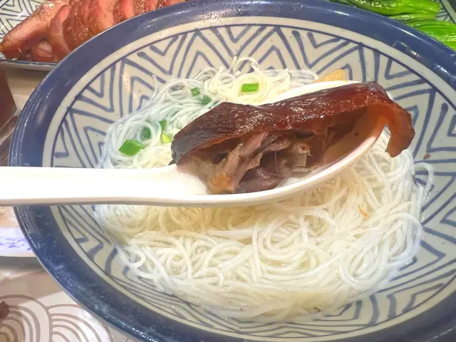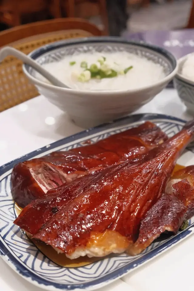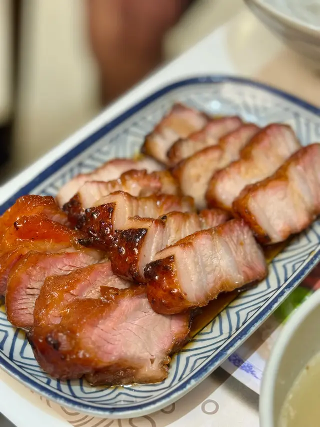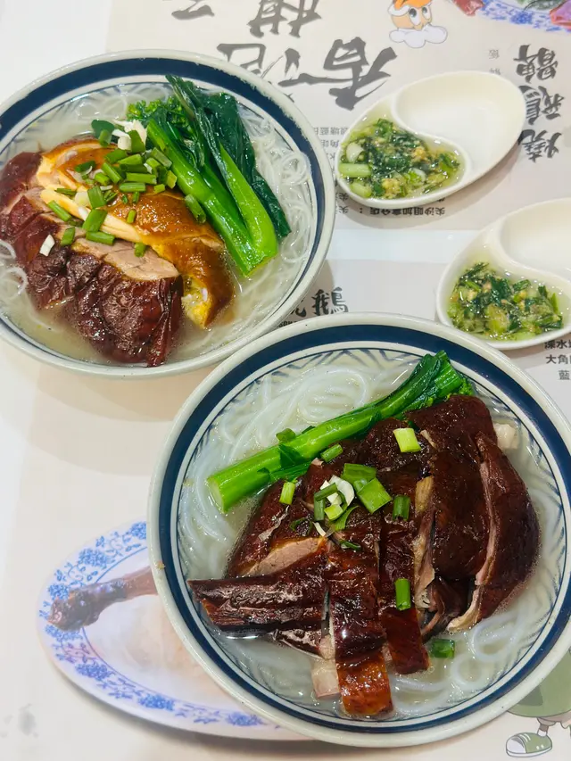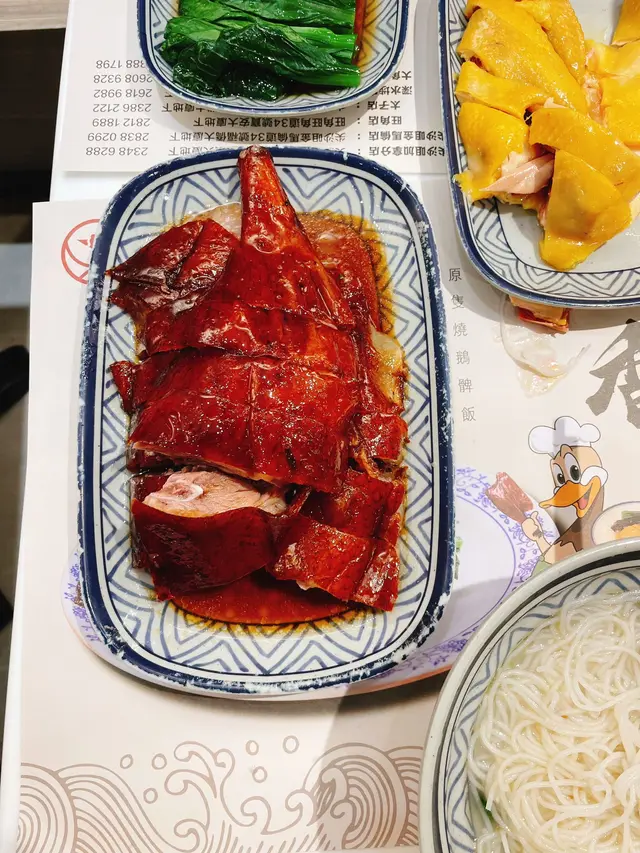 係鋪頭門面外邊就見到展櫃裡超靚色嘅燒鵝,仲有白切雞、叉燒😍招牌燒鵝有一舊鵝髀,燒鵝色澤鮮艷外皮好酥脆入面嫩到流汁咬落去仲有陣陣果木熏過嘅煙燻焦香😋單拼燒味我哋叫咗叉燒,同店員講要偏肥少少嘅部位叉燒肥瘦均勻帶住微微嘅蜜汁香氣,送飯一流🍚燒鵝配瀨粉食滑捋捋 QQ 彈彈唔似河粉一夾就碎配埋燒鵝真係一絕🍜查看更多