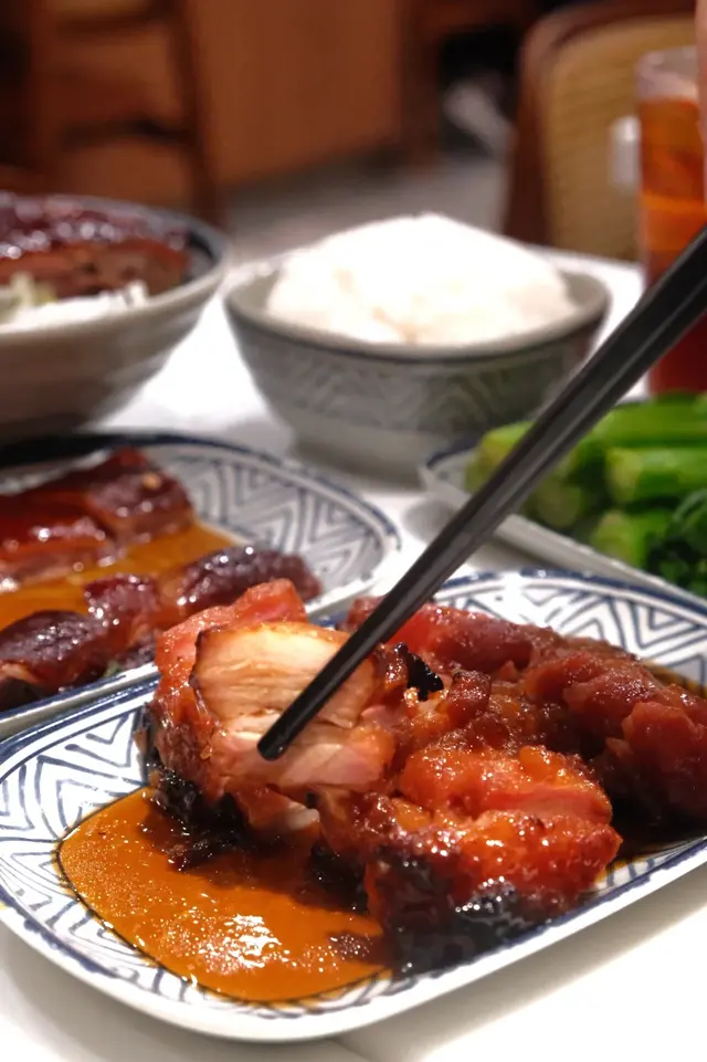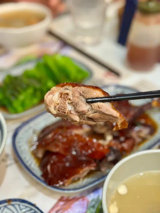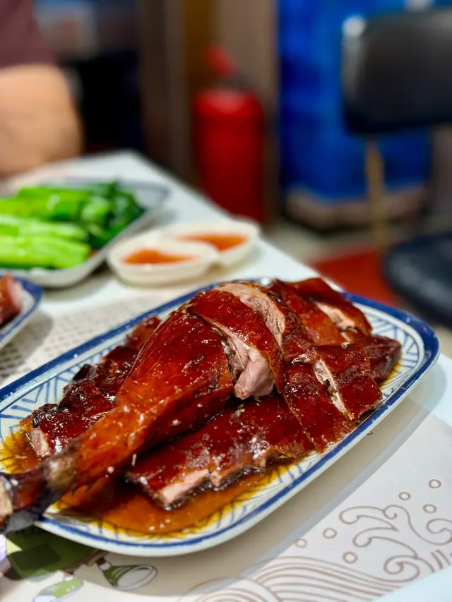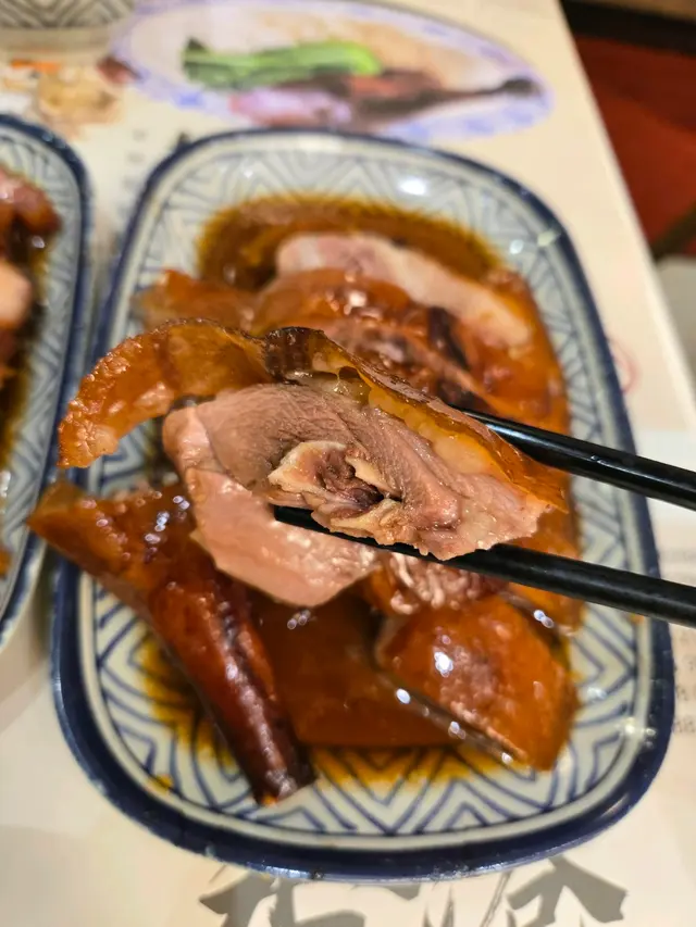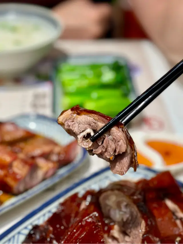 第一次試棋子燒鵝,即刻被個燒鵝皮驚呆!脆到咬落「咔嚓」聲,油香順住齒縫滲出,肉汁鎖得超夠,完全唔會乾柴。叫咗份燒鵝油雞雙拼飯,油雞皮滑到掂,肉嫩到出汁,兩種鮮香夾埋,撈埋啲飯簡直停唔到口!後尾加咗例牌叉燒,選嘅係半肥瘦梅頭肉,邊位微焦帶炭香,切開見到肉汁微微滲出 。醬汁熬得稠滑,鹹甜平衡得剛好,唔會過甜膩喉,淋喺熱飯度,每粒米都掛住醬香,一口飯一口叉燒,根本停唔到口 。肥瘦均勻,醬汁甜香夠濃,咬落帶少少焦香,正到痹聽街坊講佢哋嘅燒鵝油雞瀨粉都好正,試完真係抵讚,燒鵝皮脆肉嫩查看更多