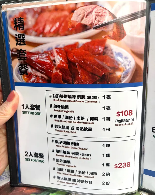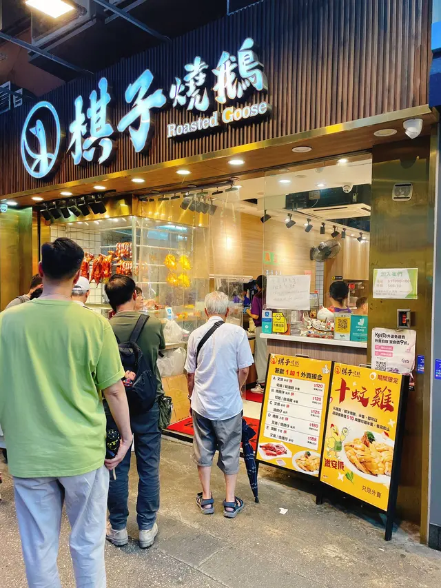 今日同朋友去旺角搵食,試咗呢間「棋子燒鵝」,貪佢有套餐夠抵食!一個例牌燒鵝+燒味單拼+郊外油菜+主食+飲品,散叫嘅話肯定貴一截,套餐慳唔少~ **🔥 棋子燒鵝(例牌)** 招牌必試!鵝皮燒得脆卜卜,肉質嫩滑唔乾身,仲有少少肉汁滲出嚟。醬汁鹹甜適中,但唔會蓋過鵝肉原味,送飯一流! **🍖 單拼燒味|肥叉燒** 揀咗肥叉,果然冇失望!半肥瘦比例完美,肥肉相間,邪惡但滿足~如果怕膩可以配啖瀨粉食啖白飯平衡下。 **🥬 郊外油菜|白灼菜心** 菜心新鮮冇渣,淋咗少少豉油,再點少少燒鵝汁,簡單清爽,中和返燒味嘅油膩感。 **🍚 主食|瀨粉 / 白飯** 瀨粉夠彈有口感,不過食燒味始終都係撈白飯最好味! **💡 外賣優惠Tips** 見到門口貼住外賣限定:買半隻燒鵝可以用$10換購半隻切雞!岩哂屋企加餸抵食~ **總結** 性價比高嘅燒味店,尤其套餐真係平靚正。肥叉同燒鵝都出色,服務同環境就一般茶記格局,但為咗個味道會再encore! 查看更多