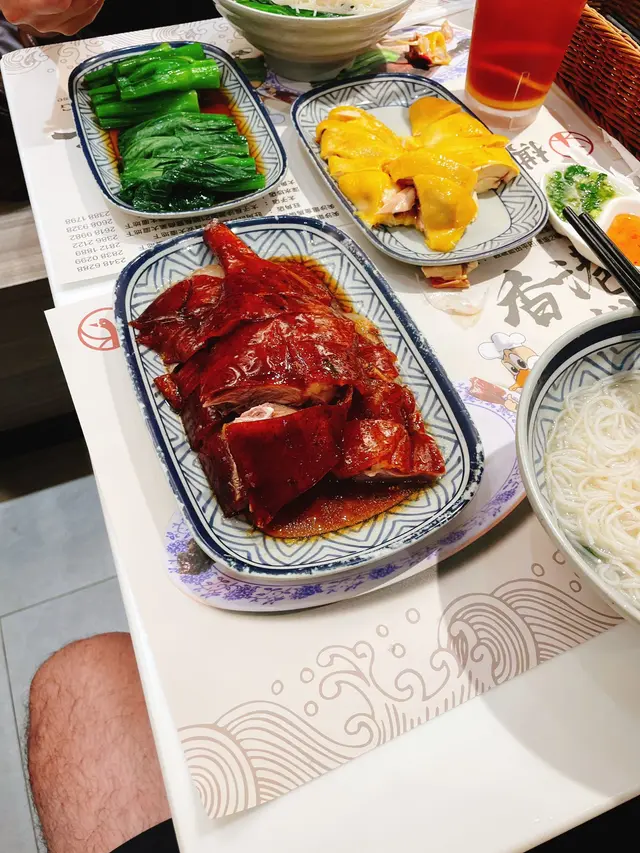 嗰晚同朋友行到肚餓,想食燒鵝,於是我哋就揀咗去棋子燒鵝。呢間舖頭喺街坊之間好出名,特別係佢哋嘅燒味,所以好多人斬料返家加餸,店員忙不停。我哋點咗二人餐,$218,入面有棋子燒鵝例牌、單拼燒味、郊外油菜、瀨粉兩碗同埋兩杯飲品。仲另外加咗個麻辣手撕雞,$28。燒鵝,真係唔負所望。鵝皮燒得脆,入口有種「卡滋」聲,而鵝肉入面仲保持住嫩滑,唔會乾柴,肉汁豐富,帶有陣陣炭燒香味。配埋佢哋嘅秘製甜梅醬,酸酸甜甜,完美平衡咗鵝肉嘅油膩感,真係一啖接一啖,食到停唔到口。單拼燒味嗰碟我哋揀咗叉燒。叉燒煮得啱啱好,外層微焦,帶有少少蜜糖嘅甜味,內裡嘅肉質嫩滑,脂肪同瘦肉比例剛剛好,入面嘅肉汁滲出嚟,令人回味。麻辣手撕雞 $28呢雞肉鮮嫩,辣味有勁,又有啲麻麻嘅感覺,加上啲芝麻,味道更加豐富,真係好醒胃,食完之後胃口更大開。瀨粉亦都好正,粉質順滑,湯底清甜,唔會太重口味,配埋啲郊外油菜,清清淡淡,正好中和返燒味嘅濃郁。最後,當然唔少得嚟杯凍菜蜜同奶茶嚟個結尾,下次可以再單🤪查看更多