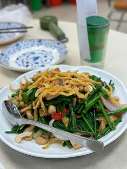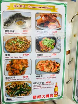 环境阔落,有冷气 ,菜单气氛都是大排档格局,但是非常卫生,位于街市上方,属于旧式饭店的一种,对于新世代来说真的超新颖又富香港特色,晚上去街市简直像探险一样有趣。见到有些不同国家的游客都有慕名而来,相信是因为有多种香港经典小炒及煲仔特色菜可以在此食到,同时菜式亦多样化,于是凑热闹点了两道菜肴。首先上菜速度超快,点了两道有镬气的煲仔菜,蒜子火腩大鳝煲,鱼鳝大片,质地弹牙,加上火腩连皮,还有腐竹、冬菇仔等吸汁食材,食了令人怀念的菜色滋味,然后是姜葱鱼头煲,大葱吸入酱汁,当菜食也很棒,由于是中式绿色段位的大葱,原本作辟腥之用,不过因为经过油爆的关系非常翠绿鲜嫩,是非常好食的葱!…查看更多