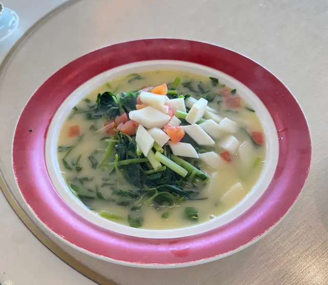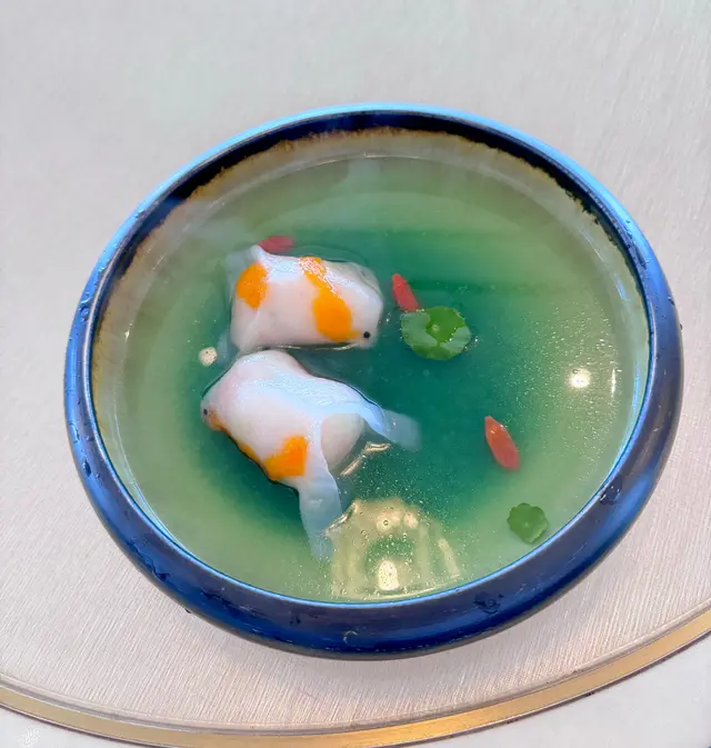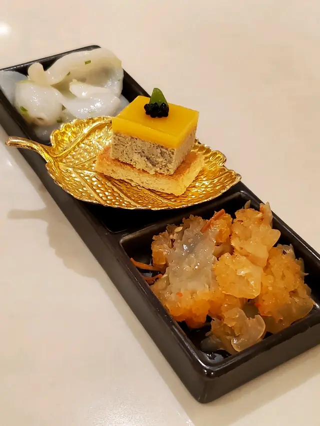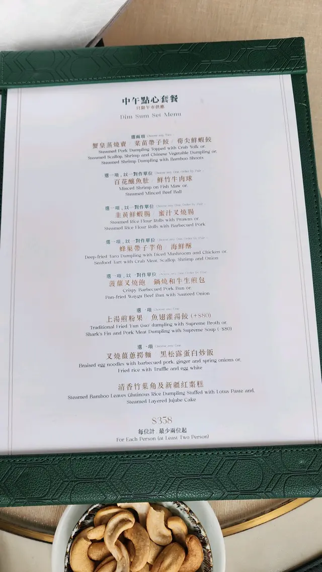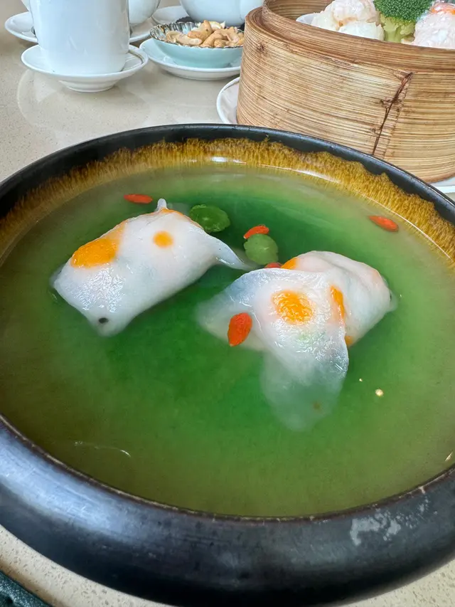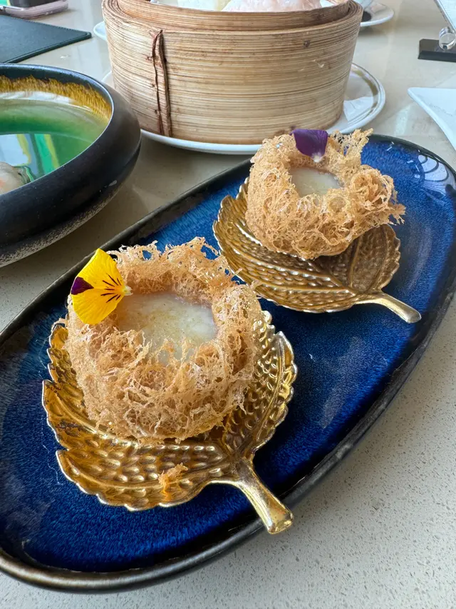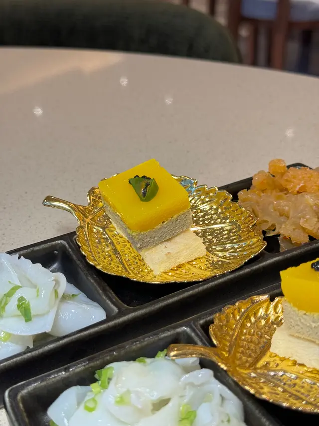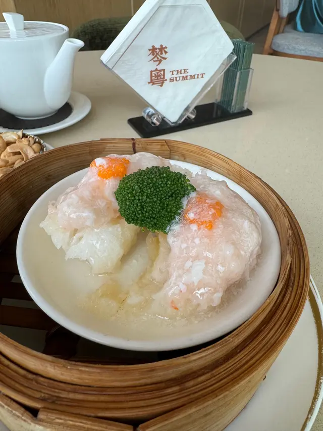 2025年的第一天,想有一個新開始,所以帶家人去了高級粵菜館棽粵吃點心。估唔到下午一點去到,餐廳已經滿座,係呢度,你完全感受唔到因港人北上,而令餐廳生意收到影響,而且好多係一家大細和老人家一起聚餐,仲有一枱係慶祝生日。我地點了“中午點心套餐”:第一個係百花釀魚肚,足料而且魚肚沒有腥味。菜苗帶子餃,帶子很新鮮,好味!相比之下,蜜汁叉燒腸啲叉燒就應該係隔夜,已經發黑,口感比較差。因為係新年想食好啲,所以叫了魚翅灌湯餃,味道不錯,湯亦鮮甜。鍋燒和牛生煎包令人很驚喜,熱辣辣的上枱,火候控制得好好,保留到包裡面的肉汁,和牛亦沒有煮到好老,好食!海鮮酥就因為啲海鮮唔係咁新鮮,所以味道稍遜。黑松露蛋白炒飯,黑松露味道突出,炒飯亦沒有太多油,剛剛恰到好處。最後甜品係清香竹葉角及新疆紅棗糕,因為已經吃得好飽,所以飯和甜品都要打包。整體黎講,食物係好食,餐廳樓面職員都很落力,招呼亦周到,如果廚房可以再留意番啲食材水準,應該可以再做多啲生意。…查看更多