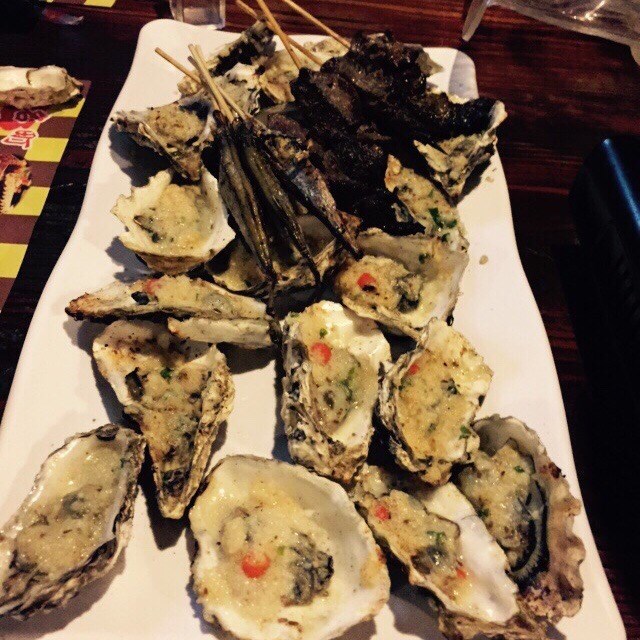 芥茉酱广岛蚝:蚝连壳烧,虽令芥茉味提升,但蚝身烧后缩得像蚝豉,破坏了口感!