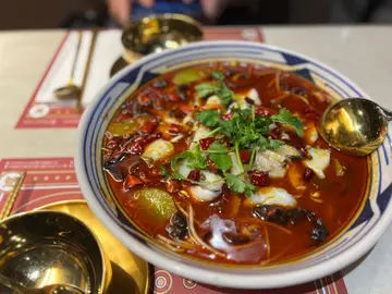 已经去过呢间舖头好多次。如果平日嚟食晏,冇+1收费,不过有时可能要等位,所以平日黎最好book定位先。而假日嚟食晏昼通常唔算好多人,但就有+1收费。呢度两边都系卡位,好企理,亦都坐得好舒服。舖头播住流行曲,啱听!今日我地两个人就坐咗卡位,每张枱上面都放左午市嘅Menu。食过咁多次,次次都系叫干㶽。最钟意食麻辣味,微辣,鲷鱼,牛肚,田鸡,薯粉。呢个午餐干㶽,包咗一碗白饭同埋一罐汽水。今日都唔例外,都系叫咗个干㶽。但因唔系好肚饿,就冇嗌薯粉,就咁嗌三个𩠌就算啦。嘢食嚟到啦,佢个辣真系好香,我唔系话食得好辣𠮶啲人,但又钟意食辣,微辣已经觉得好香好够辣。鲷鱼新鲜,牛肚系靓嘅厚身金钱肚. 田鸡有肉有骨,唔会话剩系得啲骨,而且都冇话特别加钱先叫到田鸡,所以好抵食(平时晚市单叫田鸡菜式都比其他肉类贵)。希望佢keep住个水准,一定会继续帮衬!…查看更多