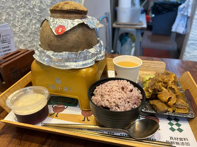 基本上個湯係ok,但始終係燉盅唔會好大碗同多料,我哋叫左2個唔同材料嘅烏雞湯,套餐咁叫,佢個飯係類似啲營養飯有啲紅米同其他料撈埋,餸黎講一人餐都算夠食,但感覺真係好家常便飯feel,好似係冇乜味精嘅感覺,如果想清清地食一餐都係唔錯嘅選擇,有椰子果個湯就好甜椰子味,另外啲餸嘅汁都好食。之後我想借廁所,店長都好nice好好人,個廁所好細但就好乾淨,呢間食店堂食空間唔算大,就係骨子,似係兩口子經營嘅良心小店。…查看更多