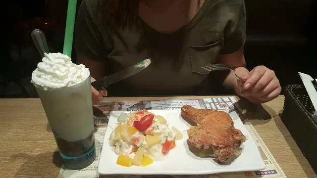 之前在椰林閣食過下午茶都不錯炒的食物,今次就來見到有不少晚餐但只是小菜,所以最後就在主餐牌看到有個羅漢齋炒麵五十六元,就叫了一份來吃,因飲品要另計就叫了水飲,食物好快來到了,沒想到份量都幾多幾靚,面都有不少的白菜同素食,嗅得都幾香,但可能醬汁過多闗係,反而覺得只有很少的炒麵乾炸脆的口感,味道不太濃,清清地,最後再加上辣椒醬就好味得多,而這裡的辣椒醬都幾辣惹味,炒麵口感都可以而且份量都不少,最後一人都吃不完,沒想到這裡的炒食物都不錯,可以下次過來再試晚餐小菜。在晚餐中選了土魷蒸肉餅飲茶走七十二元仲有個白飯,叫了等了十多分鐘就來到都幾大碟。而且都幾香,白飯一碗都應該夠食。肉餅入面都幾多魷魚,味道都幾濃而又不太咸,有了少少蔥所以增加不少香味,但一食肉的口感太淋,應該是比較多肥膏或豬肉不太靚,但都叫可接受的,豉油不太咸,送飯不錯,肉餅即整的感覺都幾新鮮,白飯都煮得剛好。飲品熱奶茶夠熱但茶味不夠,感覺有點淡而且不夠滑。…查看更多