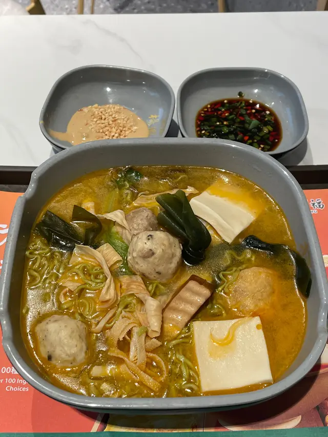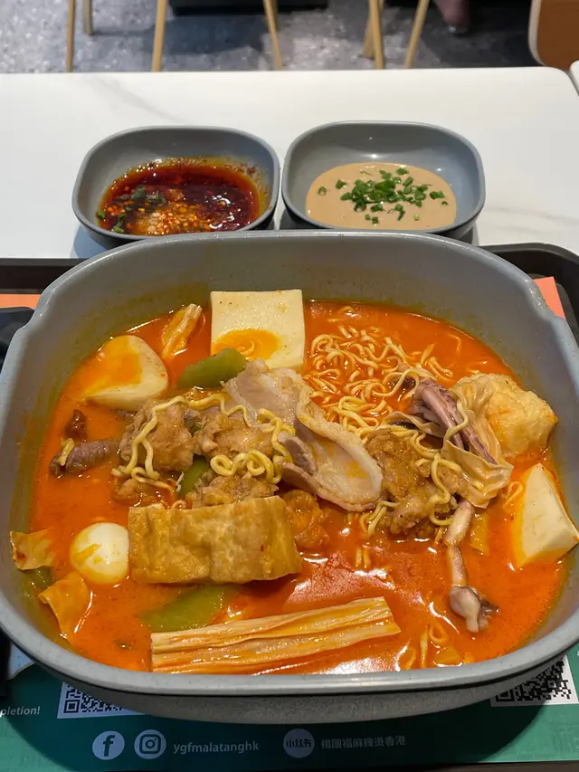 聽說楊國福麻辣燙開到了中環,於是決定和同事去試試!!位置很方便,一到中午時間,都是中環打工人,哈哈。因為我主要吃青菜,每次都會選擇加個煎蛋,個人覺得還是豬骨湯大辣的味道很不錯!味道濃郁,香辣不膩,價錢一般在80-100之間吧,沒有夾很多東西,除了豬骨湯,還有番茄湯,之前路過還看到有推廣的冬陰功湯底,之後再來嘗試!環境也是乾淨的,只是人流多的時候,供貨會有些不足,麻醬調料等不是很充足,午餐時間有時候也需要排隊!…查看更多