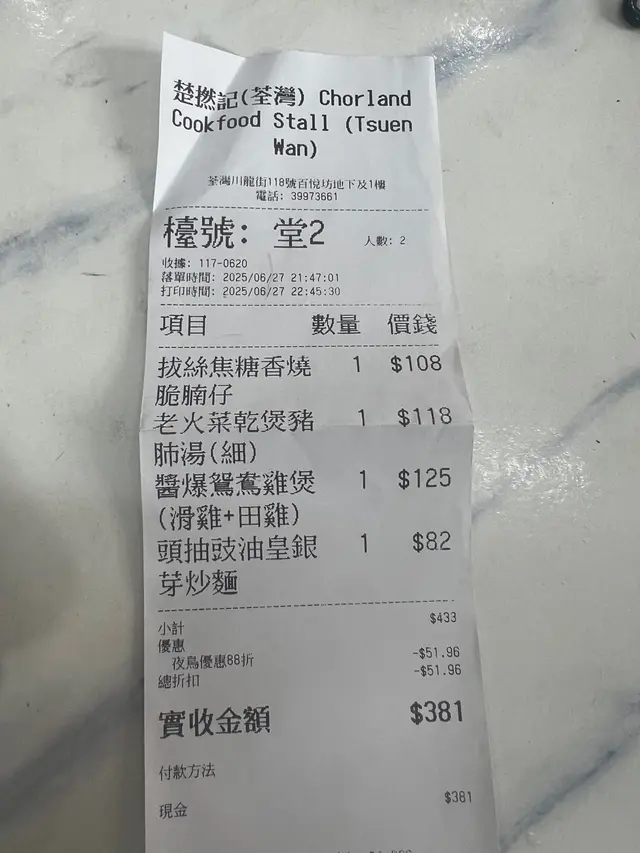 行入楚撚記,第一感覺係「呢度真係大排檔?」。裝修懷舊得嚟乾淨企理,座位寬敞,冷氣充足,完全冇傳統大排檔嘅侷促感。無論係三五知己聚餐,定係一家大細嚟食飯,都坐得舒服自在。豆漿杞子鮮腐竹浸白菜仔湯底豆香濃郁,鮮腐竹吸盡湯汁精華;白菜仔嫩綠爽脆,杞子帶點自然甜味,清淡得嚟夠滋味,養生之選~土魷蒸肉餅肉餅肥瘦適中,蒸得剛剛好;土魷鹹香惹味,增添層次感,送飯一流,簡單傳統味道最考功夫~豉汁蒸魚雲魚雲滑溜入味,豉汁香濃唔死鹹,處理得乾淨,完全冇腥味:魚雲仲可以補充骨膠原,女士至愛~白灼八爪魚仔八爪魚仔新鮮彈牙,火候掌握得宜;特別欣賞兩款醬汁:Wasabi豉油嗆辣醒胃,帶出海鮮鮮味;海鮮豉油就傳統風味,鹹甜適中店員送上綠豆清心爽,綠豆煮得綿密,甜度適中,為呢餐畫上完美句號。呢份心意,喺而家嘅餐廳已經買少見少~楚撚記成功將傳統大排檔美食,用舒服環境同合理價錢呈現。冇浮誇擺盤,冇天價收費,只有實實在在嘅好味道。如果你都想喺荃灣搵間坐得舒服、食得滿足嘅大排檔,楚撚記絕對值得一試!…查看更多