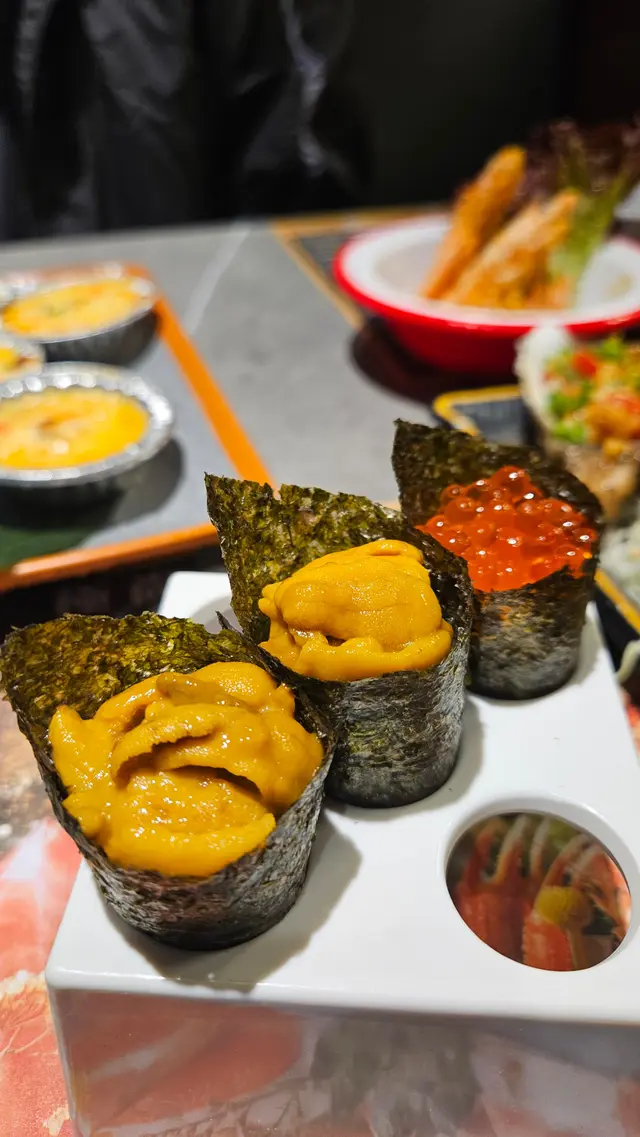 刺身新鮮,主攻三文魚、油甘魚、赤身、甜蝦、赤蝦同帶子。帶子太細粒,餐廳將佢原粒開咗一半,其實保留原粒,客人都會飽而點少啲魚類切片厚度都非常平均,剛剛好