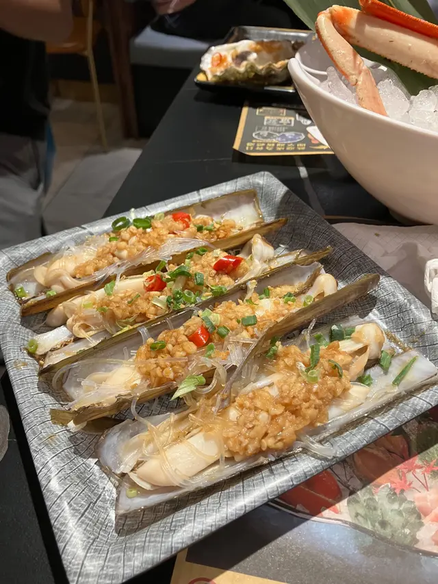 顏色對版,肉質軟滑,鹹度啱啱好蒜茸粉絲蒸蟶子偏細隻啲,只係比手指長少少,不過任食就算啦😂肉質都彈,唔會過重蒜芝士醬鰻魚玉子可以接受,飯底改為玉子,冇咁飽肚鱈魚西京燒出色