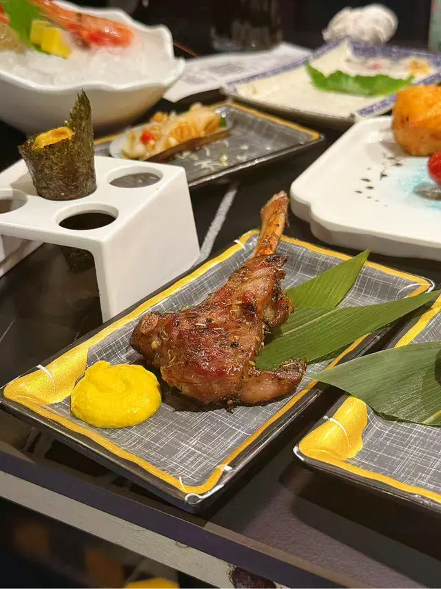 水蜜桃芒果芝士蝦壽司好夾硬嚟。。。羊架一流👍 樓下果間除咗好爆香料地成口粒粒之外,肉質極乾。而極尚大瀛喜做得非常出色,醃肉輕手,燒得靚色又多汁乳鴿同樣出色