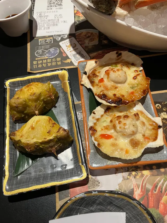 鵝肝唔錯,雖然細塊,但係算軟嫩,底下有塊紫菜薄脆加生菜,OK清新芝士焗扇貝可以不吃